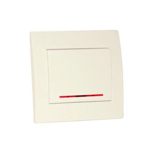 Вимикач одинарний з індикатором SE-101L серії Home має величину максимально допустимого струму навантаження 10А. Матеріал корпусу - негорючий PC-пластик основа з оцинкованої сталі, а мідні контакти мають срібне покриття.