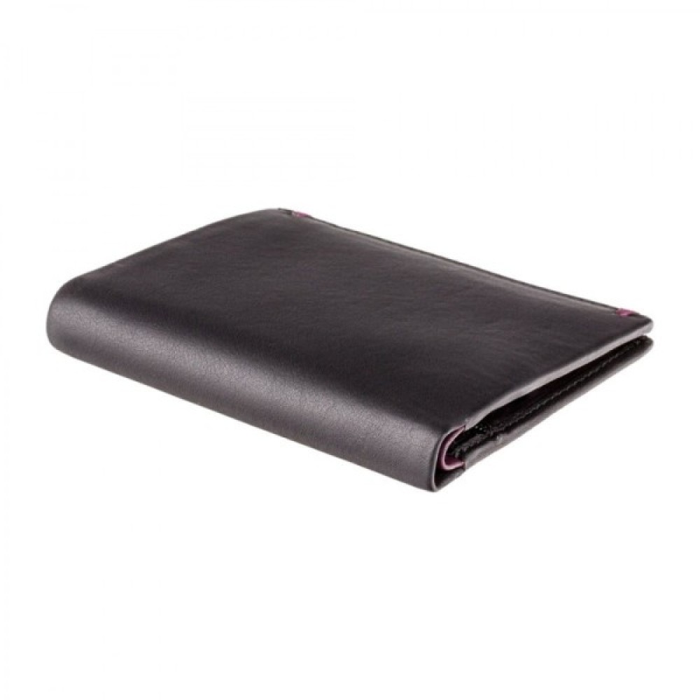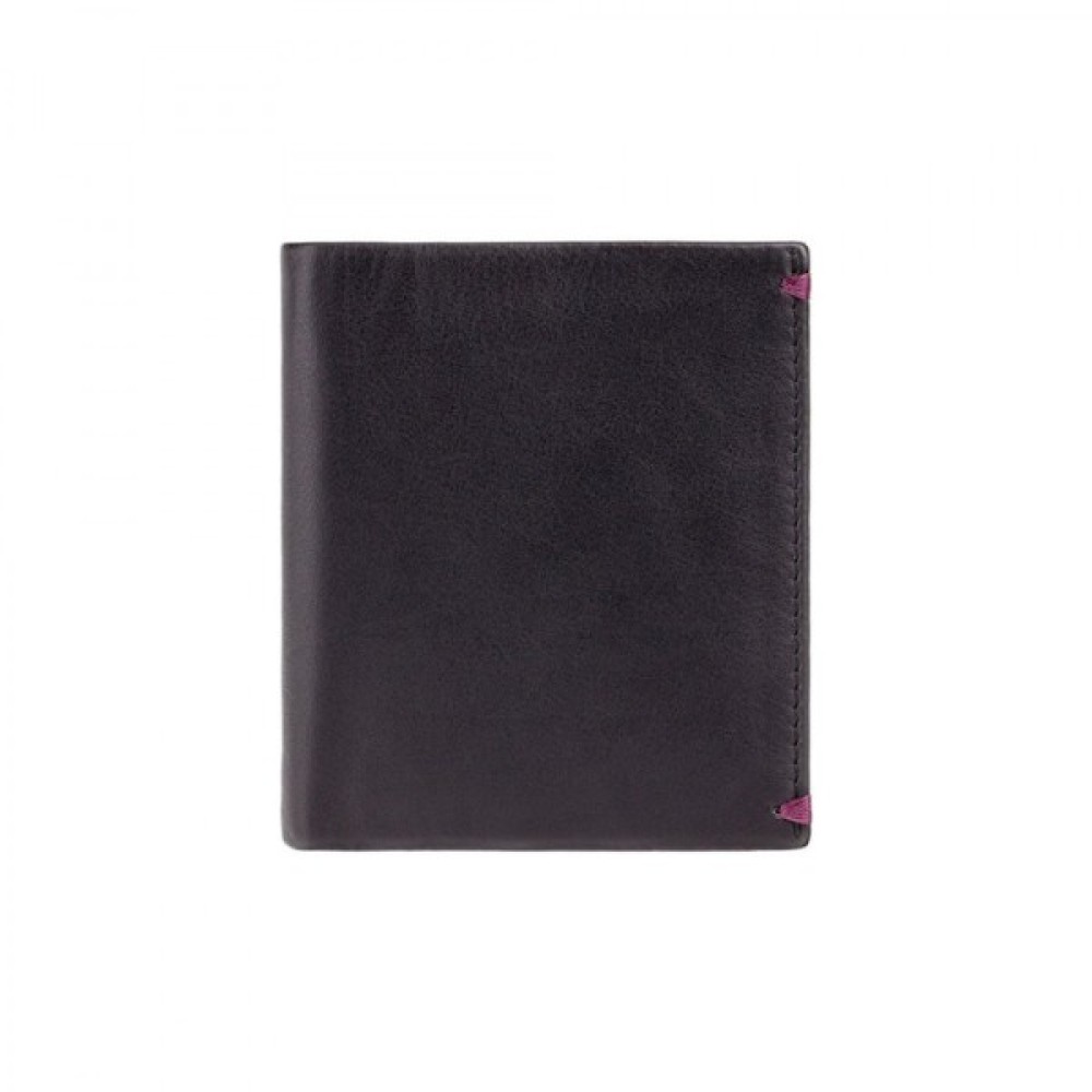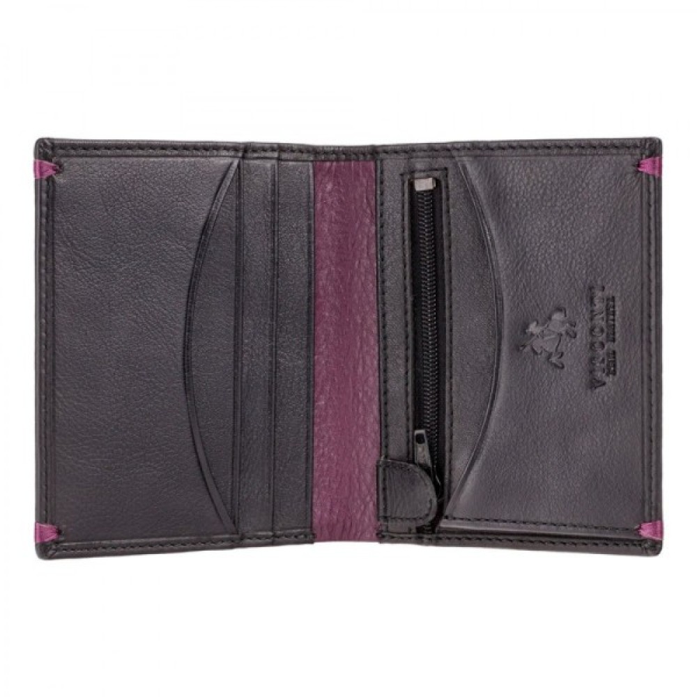 Чоловічий вертикальний гаманець із м'якої матової телячої шкіри. Оригінальне оздоблення ниткою благородного винного кольору на лицьовій стороні та контрастна внутрішня частина. Компактна модель із мінімальною кількістю відділень. Є невелика монетниця на блискавці.