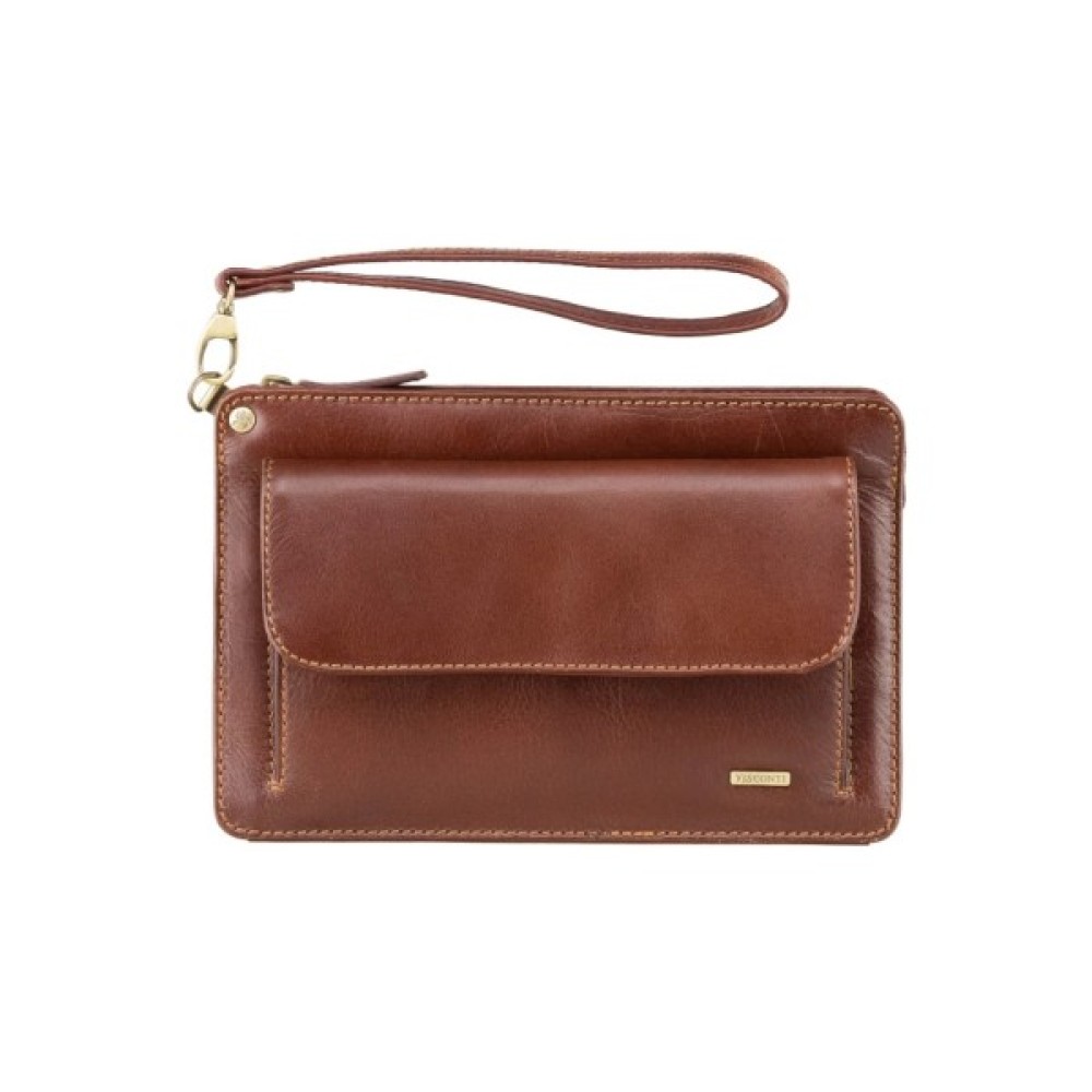 Барсетка оснащена міцною фірмовою фурнітурою та блискавками-застібками на всіх відділеннях. Усередині основного відділення є невелика додаткова секція також із застібкою-блискавкою, що гарантує підвищену безпеку. Кишеня на клапані розмістилася на лицьовій частині виробу. Є фірмова нашивка з логотипом бренду Вісконті.