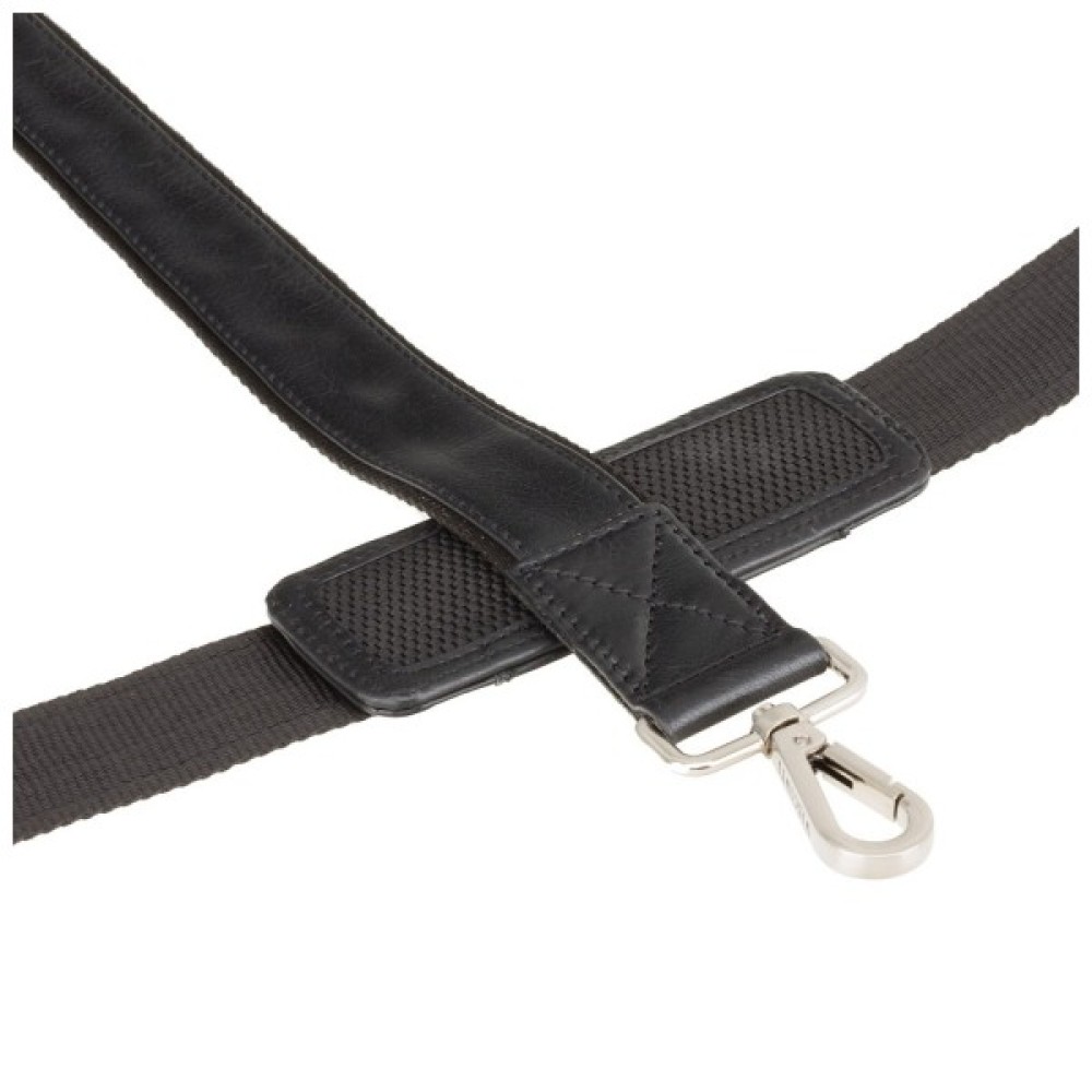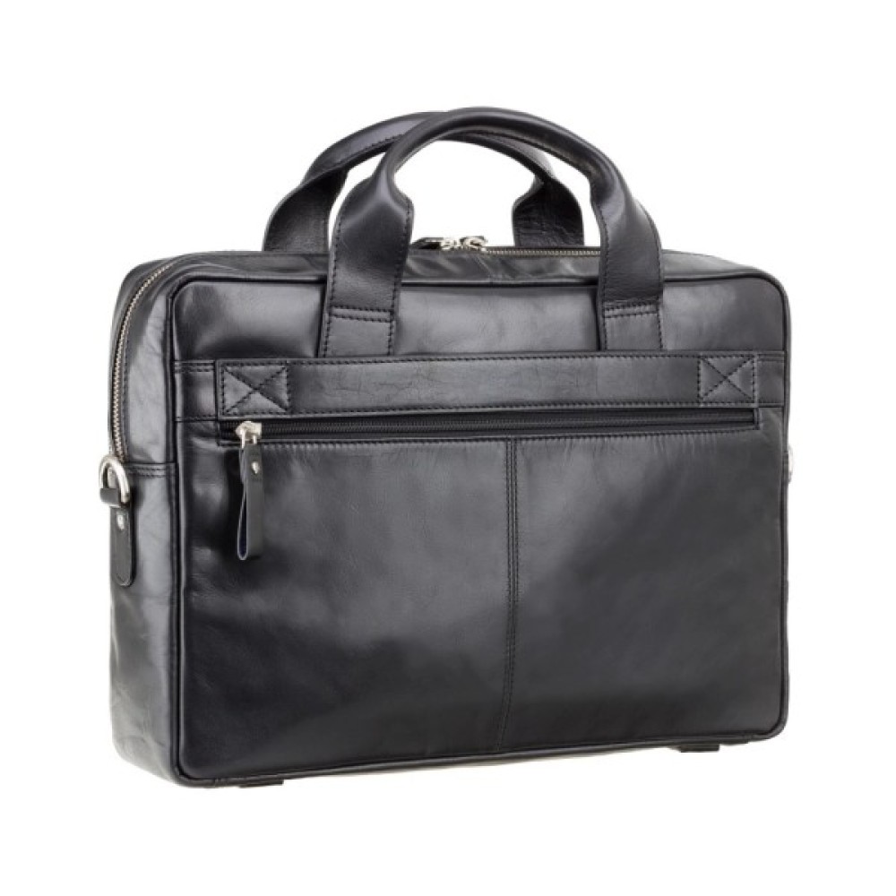 глянсова; на тильній стороні кишеня на блискавці; дві шкіряні ручки; вміщує формат А4; для ноутбука; з плечовим ременем; з захистом RFID