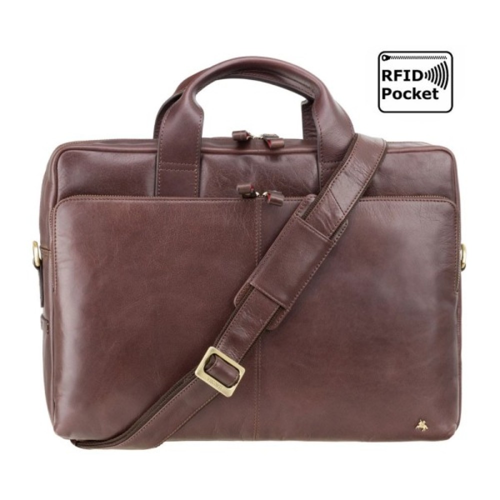 Шкіряна сумка для ноутбука 13" Visconti ML30 (Коричнева, з RFID-захистом)