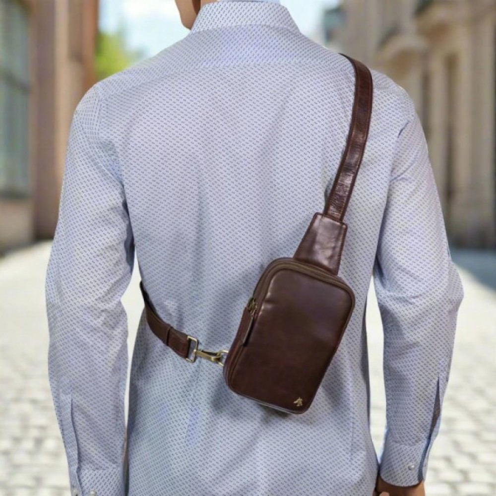 Шкіряна сумка-слінг S42 — виготовлена з високоякісної телячої шкіри з матовим ефектом.