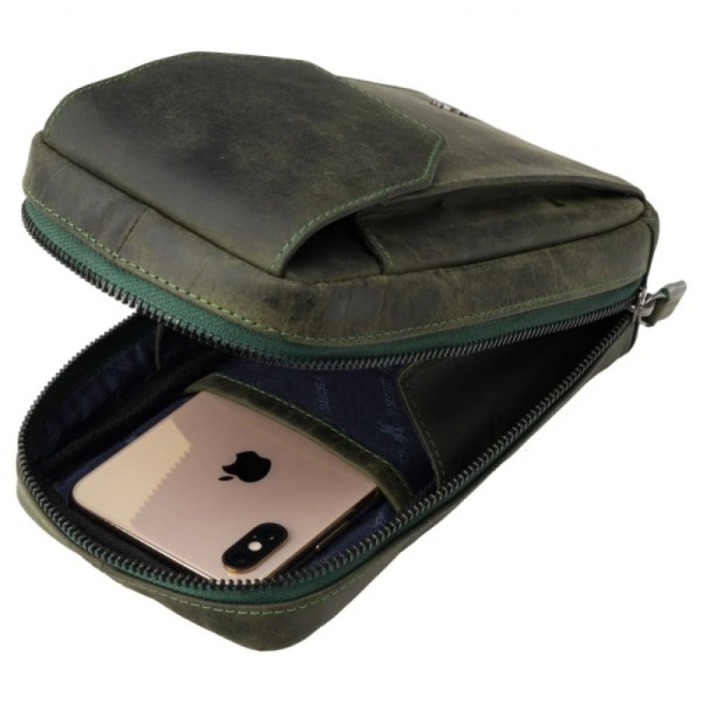 матова; регульований плечовий ремінець; петелька на пояс; кишеня для телефону на передній стінці