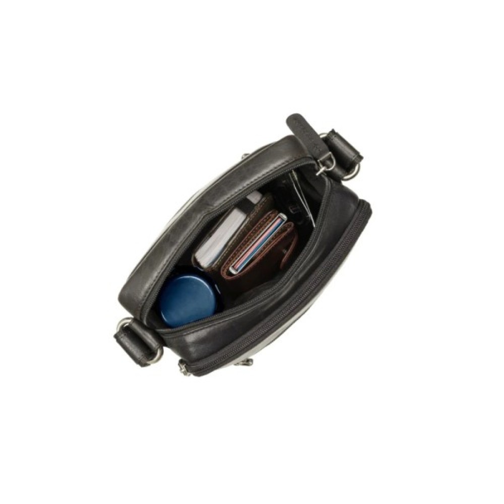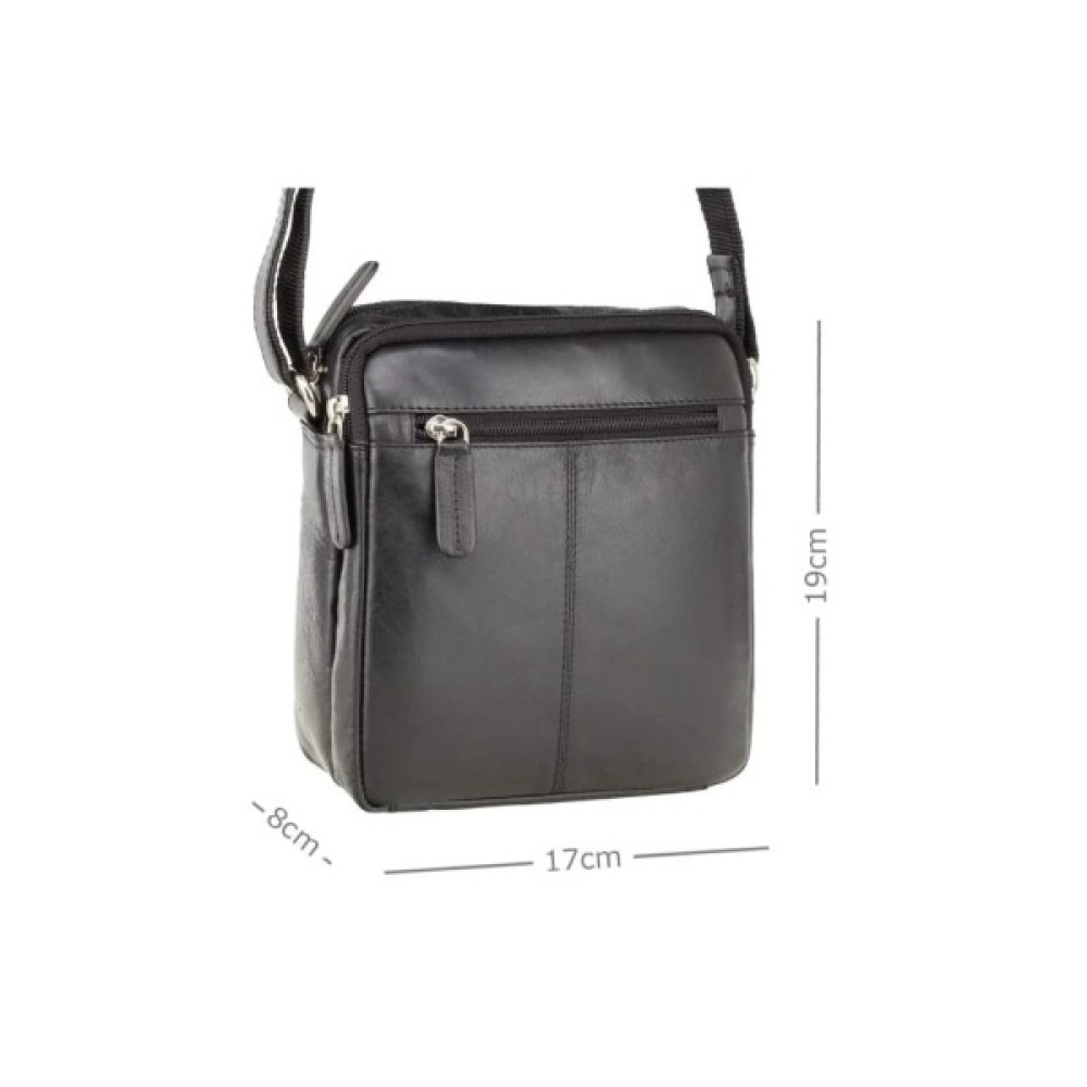 Шкіряна чоловіча сумка через плече, яка має два відділення на блискавці зі шкіряними язичками для відкриття. Завдяки невеликому розміру її зручно використовувати кожен день, адже вона розділить Ваші аксесуари по різним відділенням.