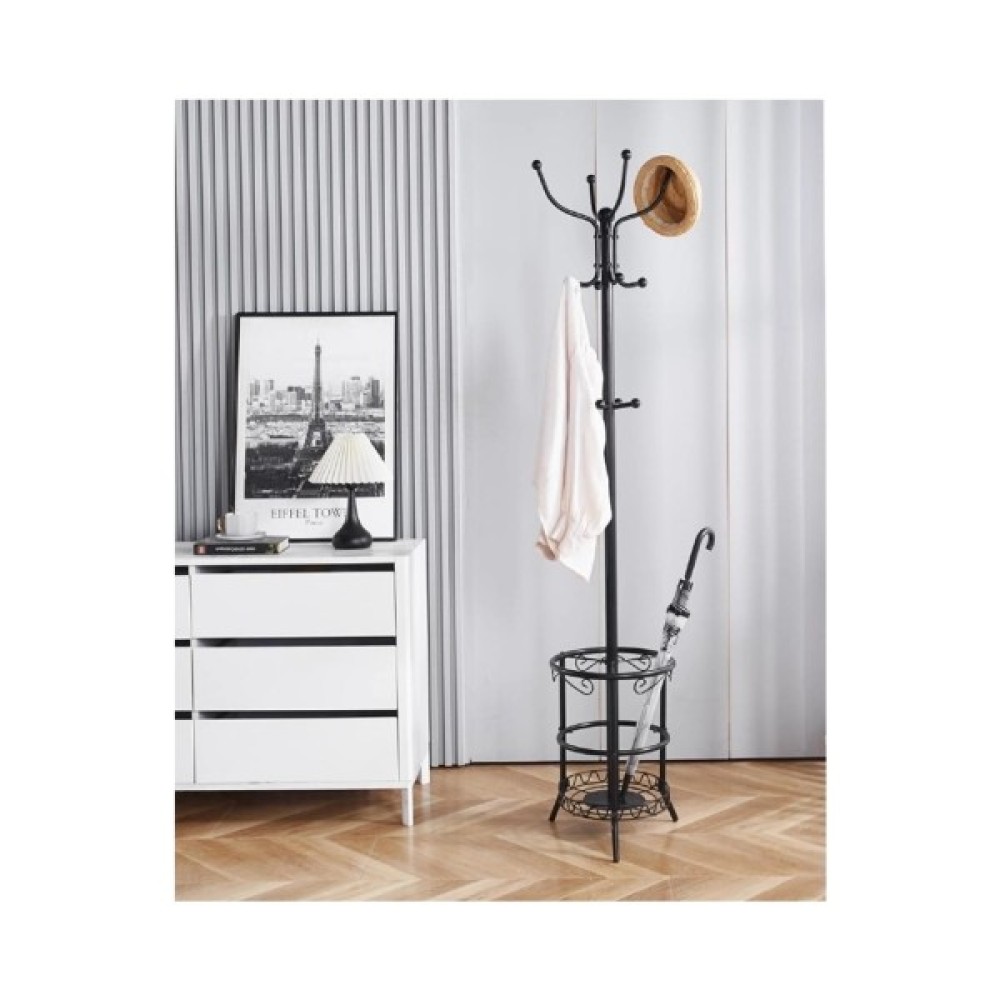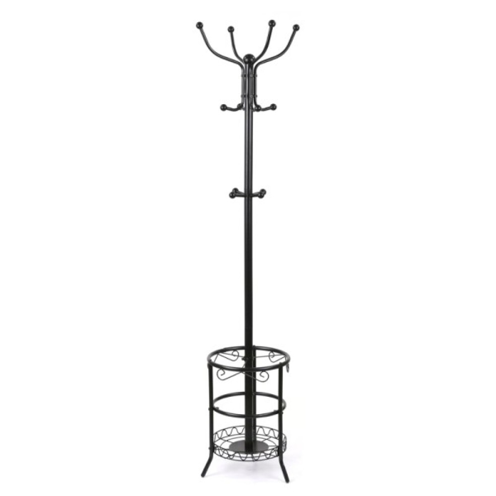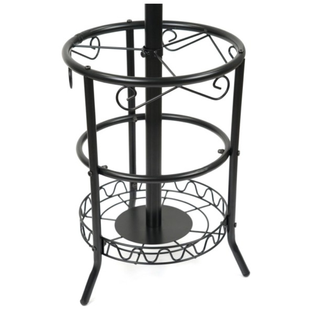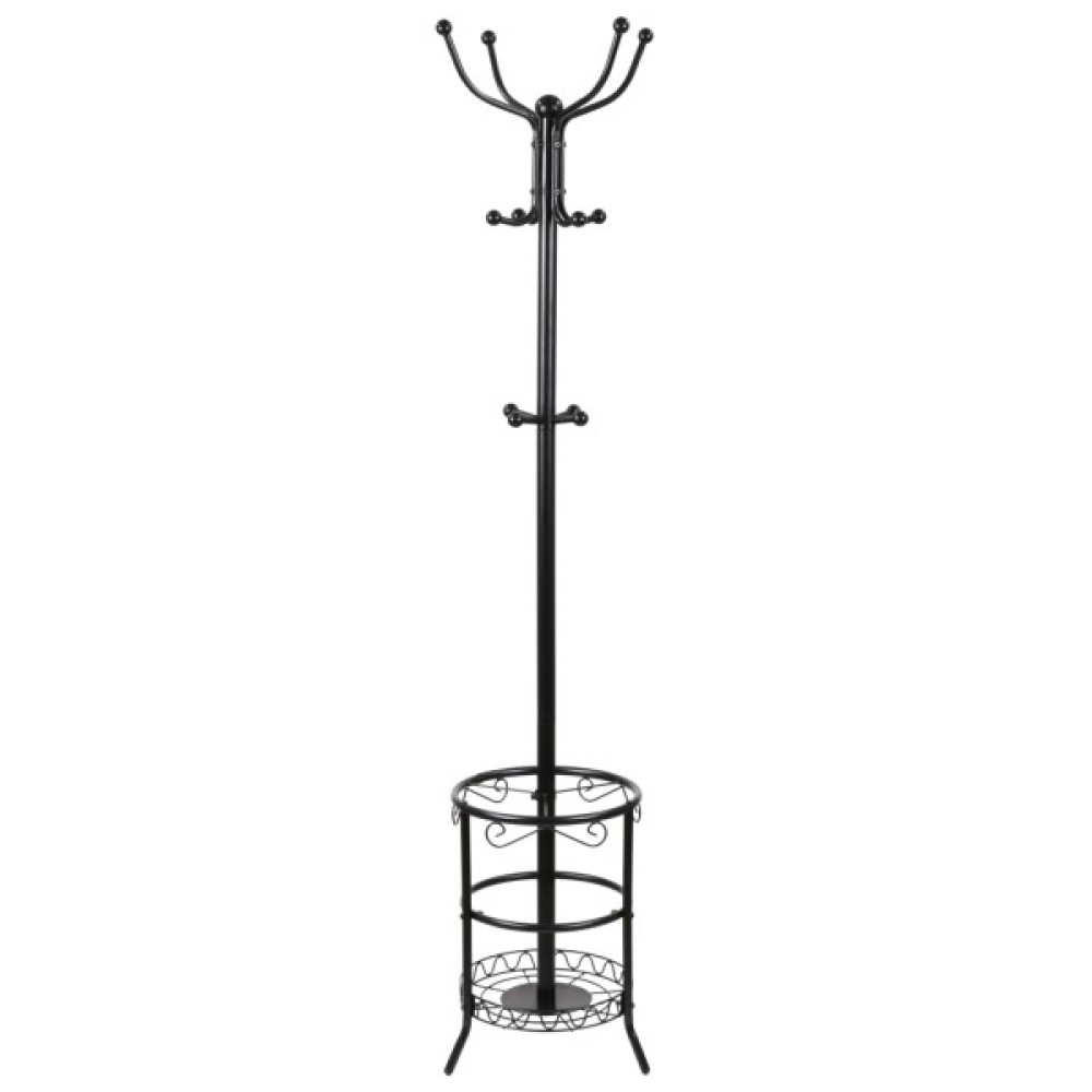 Вішак підлоговий АКЛАС Берест VKY-6033B 182x42 - це багатофункціональний та міцний предмет меблів, що допомагає організувати простір та зберігати одяг та парасольки в порядку. Дизайн є поєднанням класичних та декоративних елементів, що робить її не лише функціональною, а й естетично привабливою. Колір підкреслює її універсальність і дозволяє вписатися як у традиційні, так і у більш сучасні інтер'єри прихожих, офісів чи готелів. Виготовлений з металу, вкритий чорною попрошковою фарбою.