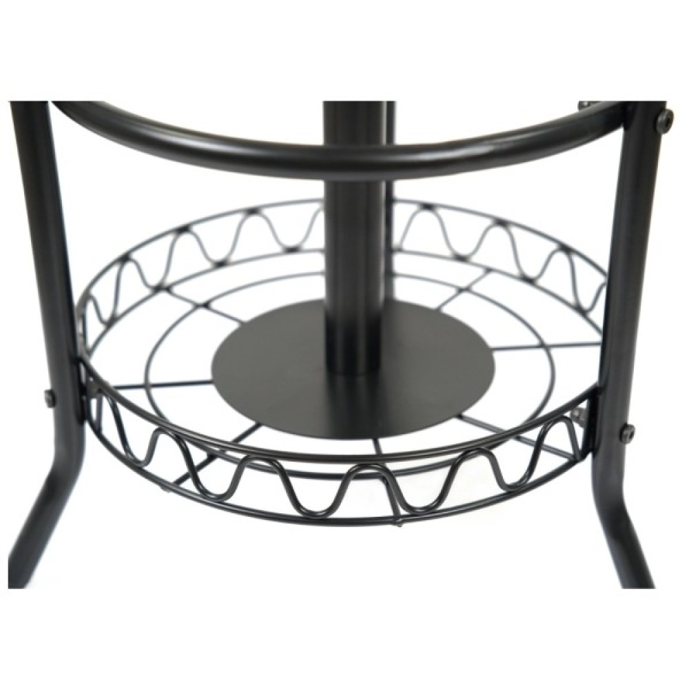 У нижній частині вішалки знаходиться велике циліндричне відділення, призначене для зберігання парасольок. Воно складається з верхнього та нижнього обідків, з'єднаних вертикальними елементами та декоративними металевими завитками, що додає виробу елегантності.