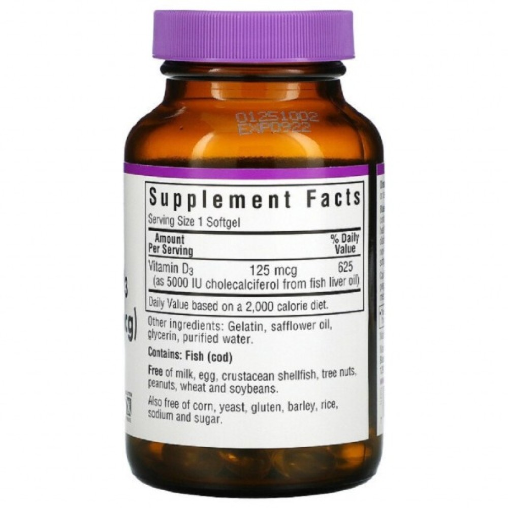 Вітамін Bluebonnet Nutrition Вітамін D3 5000IU (125 мкг), Vitamin D3, 100 желатинових кап (BLB-00321)