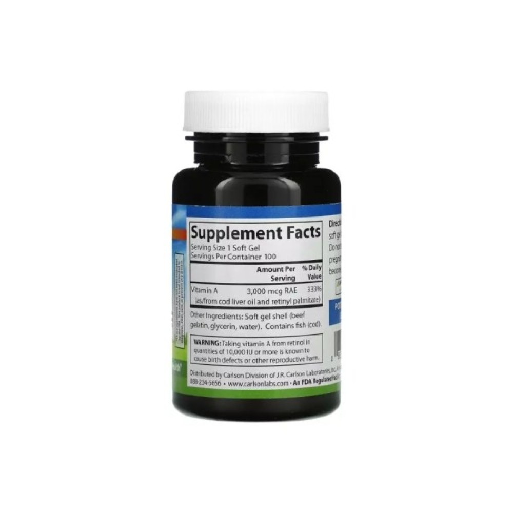 Вітамін, Carlson, Вітамін, А, 10000, МО, Vitamin, A, 100, желатинових, капсул, CL1111