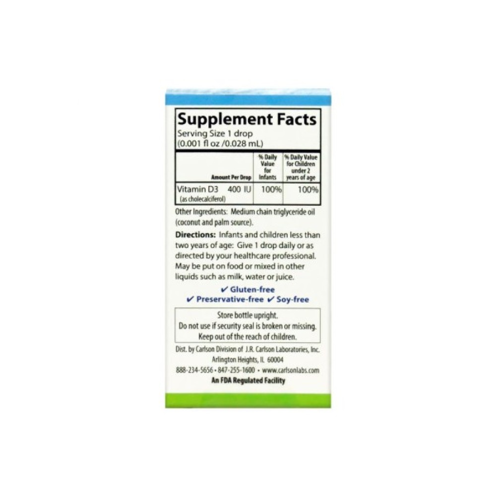 Вітамін D грає важливу роль в загальному стані здоров'я, але не всі отримують достатню його кількість разом з сонцем. Дитячий Super Daily D3 від Carlson надає вам натуральний вітамін D3 в безпечної, швидкої і зручної формі. Всього одна крапля дитячого Super Daily D3 від Carlson забезпечить вас 400 МЕ концентрованого рідкого вітаміну D3.