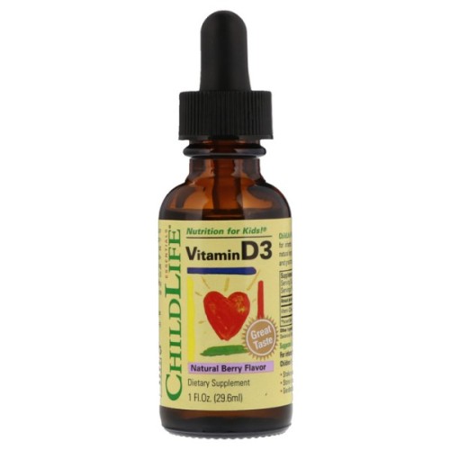 Вітамін D грає важливу роль в загальному стані здоров'я, але не всі отримують достатню його кількість разом з сонцем. Дитячий вітамін D3 з натуральним смаком ягід від ChildLife надає натуральний вітамін D3 в безпечній, швидкій і зручній формі. Цей препарат відмінно підходить для немовлят і дітей дошкільного віку, оскільки не містить спирт, штучні барвники та ароматизатори, цукор і глютен. Всього одна крапля дитячого вітаміну D3 від ChildLife забезпечить дитину 500 МЕ концентрованого рідкого вітаміну D3.