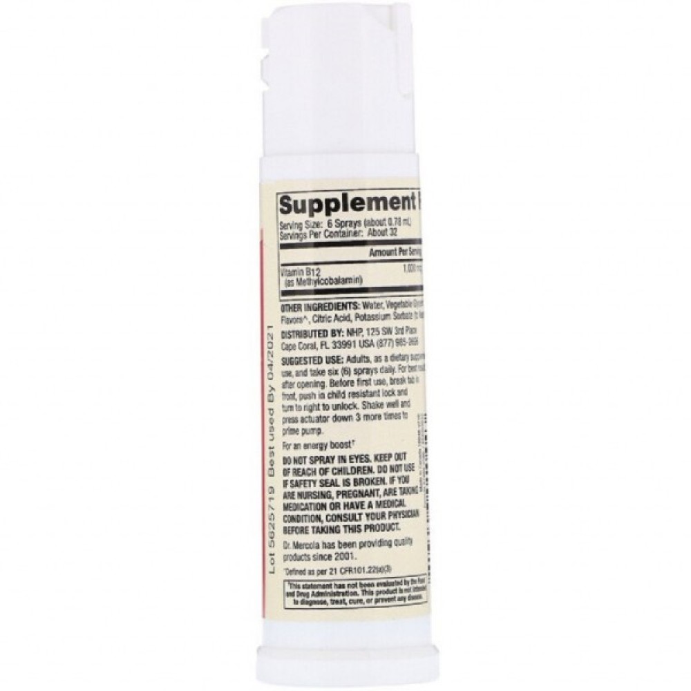 Однією з основних дій вітаміну В12 є допомога при транспортуванні кисню до кожної клітини, В12 сприяє регенерації еритроцитів. Також, поряд з іншими вітамінами групи В, він необхідний підтримки рівня Гомоцистеїну. Даний препарат підтримує здоров'я мозку та енергію за допомогою значної дози вітаміну B12, він пропонується у зручній для застосування формі – у вигляді спрею, з приємним ожиновим смаком.