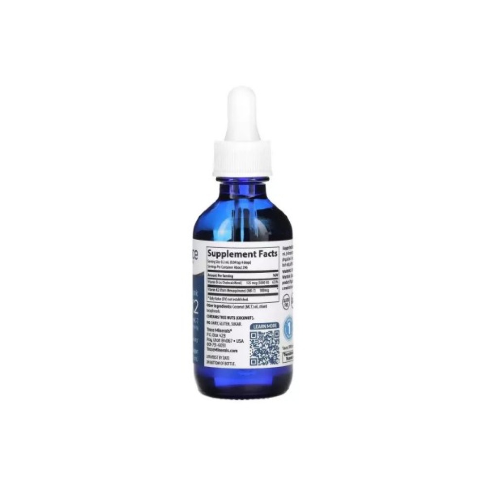 Поєднання вітаміну D3 і К2 вкрай важливі і потрібні для нормальної роботи серцево-судинної системи, підтримки рівня кальцію, здоров'я кісток. D3 допомагає засвоєнню кальцію в організмі, а високоефективна формула вітаміну К2 в формі (MK-7) з ферментованого нуту, перешкоджає кальцинуванню судин, а саме, виводить з них не засвоїли кальцій. Іонна рідка форма цих вітамінів розпізнається організмом і дозволяє легко варіювати дозування.
