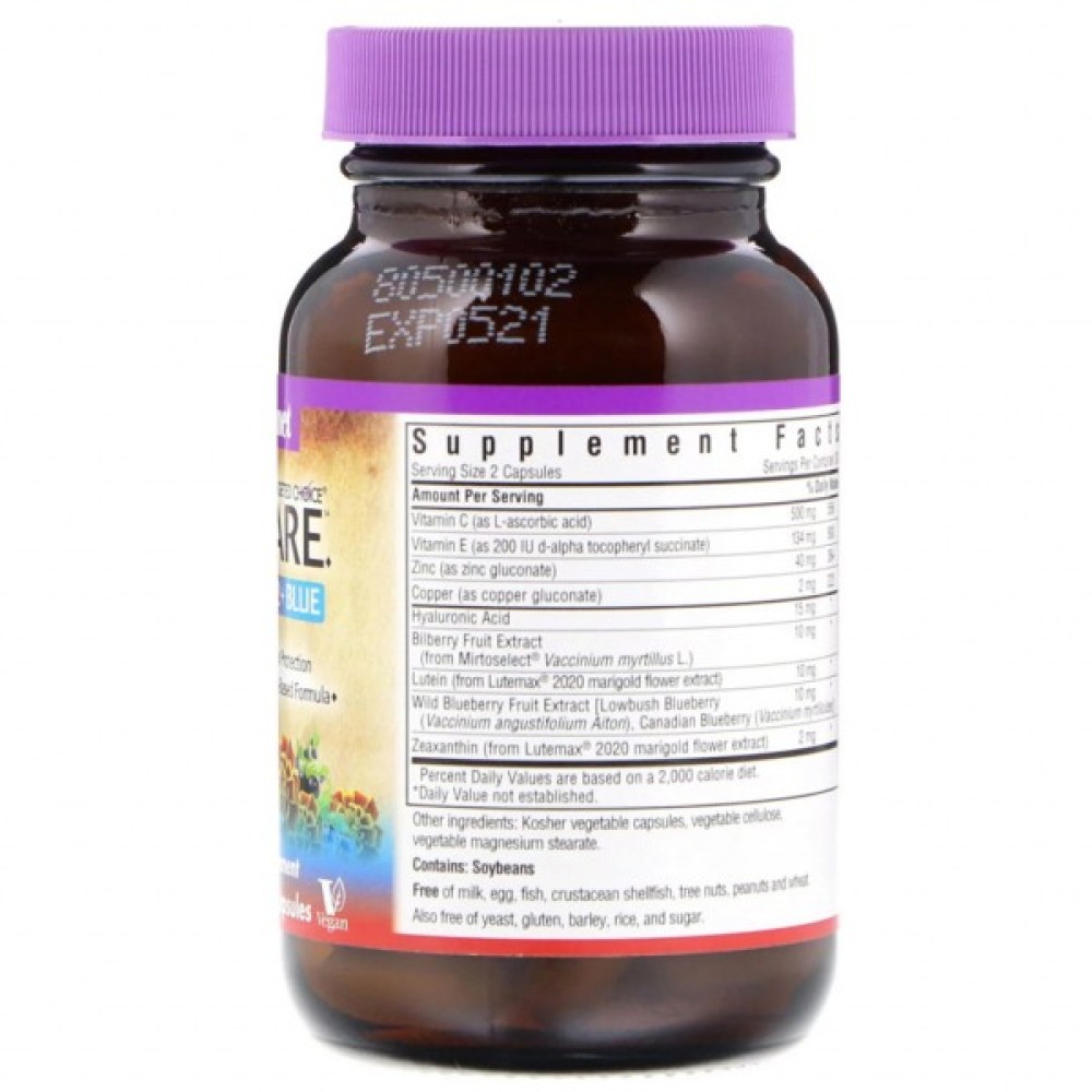 Комплекс для очей Bluebonnet Targeted Choice містить гіалуронову кислоту і суперфрукти, запобігає віковим захворюванням очей і знижує негативний вплив синього випромінювання екранів.