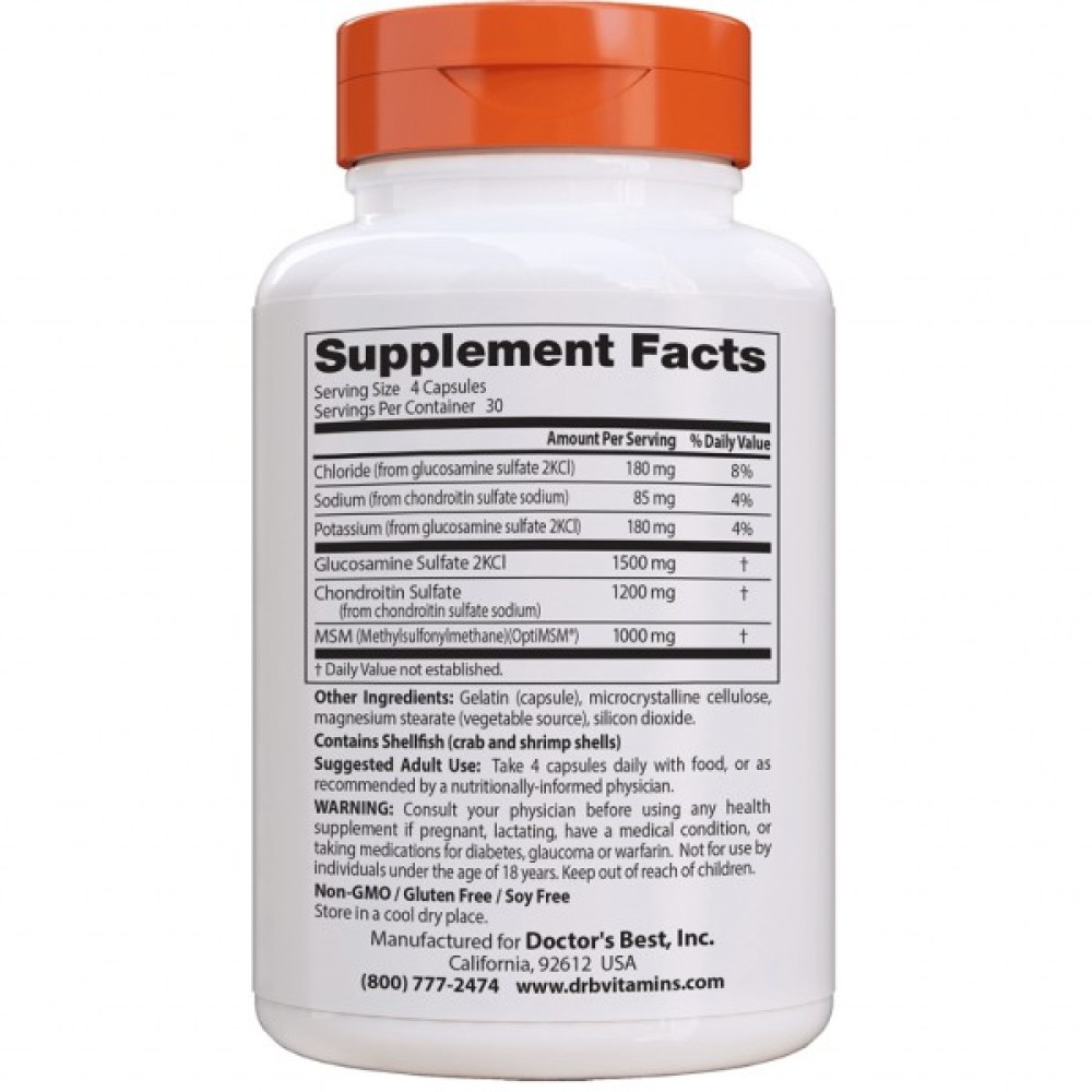 Вітамінно-мінеральний комплекс Doctor's Best Глюкозамін & Хондроитин & МСМ, OptiMSM, 120 капсул (DRB-00080)