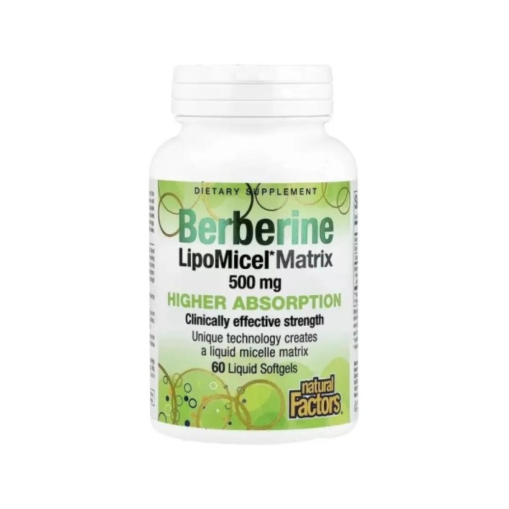 Вітамінномінеральний, комплекс, Natural, Factors, Берберін, Berberine, LipoMicel, Matrix, 60, гелевих, капсул, NFS04584