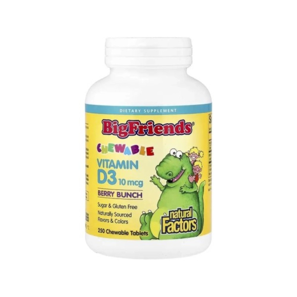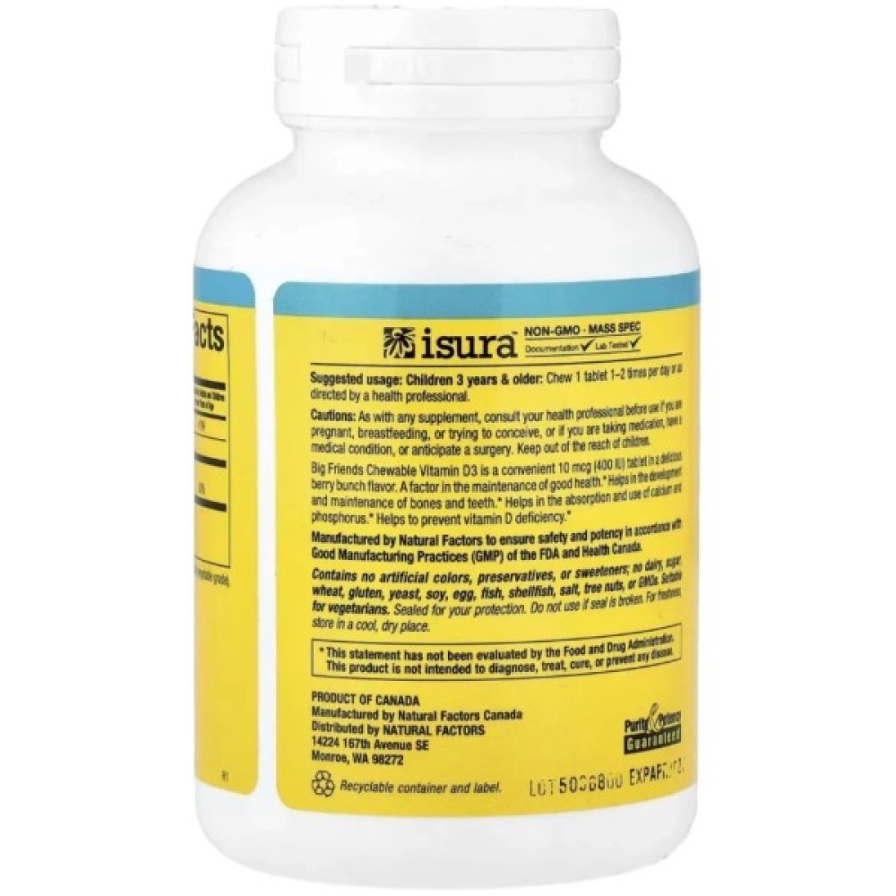 Вітамінномінеральний, комплекс, Natural, Factors, Вітамін, D3, дітей, 10, мкг, 400, МО, смак, ягід, Chewable, Vitamin, D3, NFS01546
