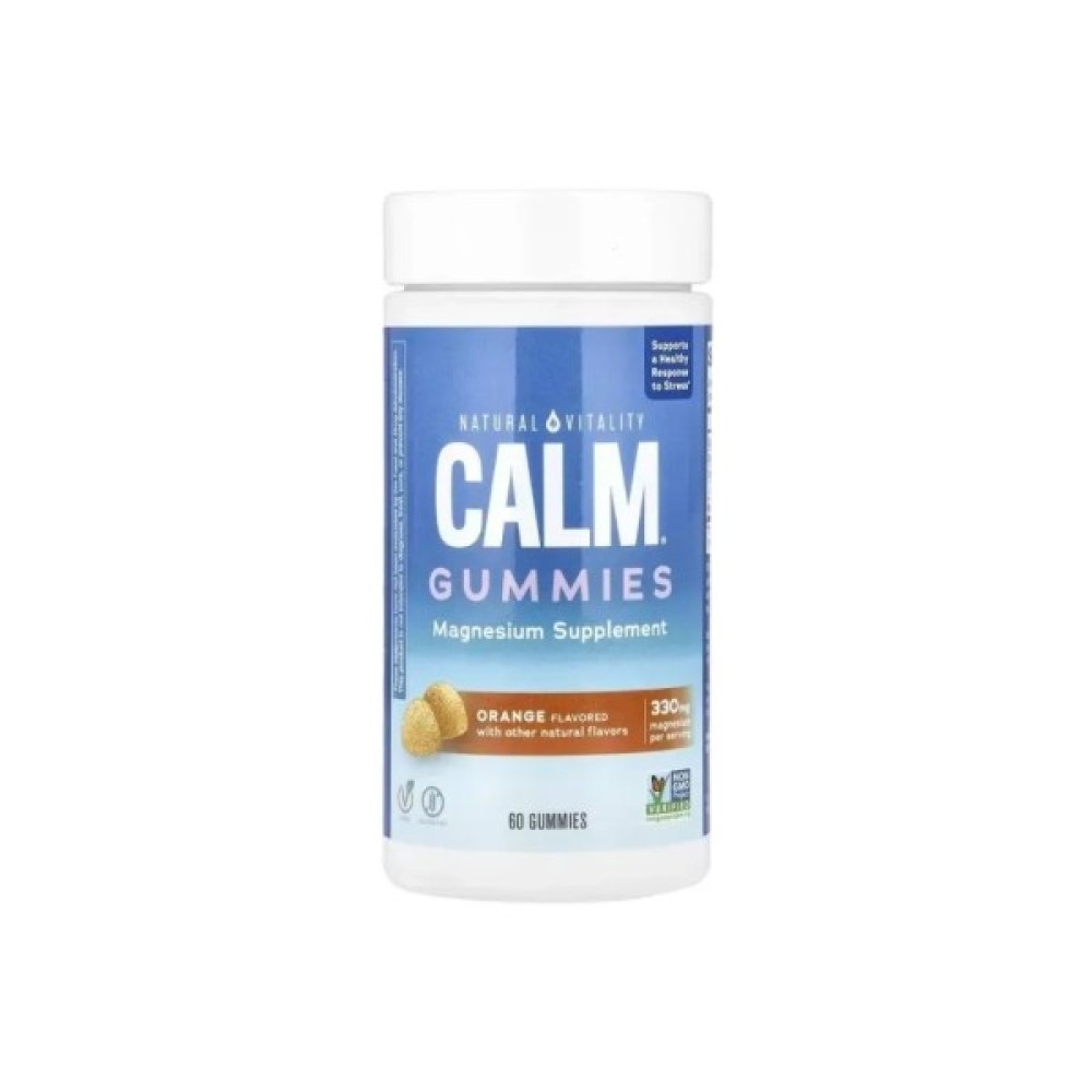 Основні переваги: Цитрат Магнію, 330 мг, смак апельсину, CALM, Magnesium Supplement, Natural Vitality, 60 жувальних цукерок