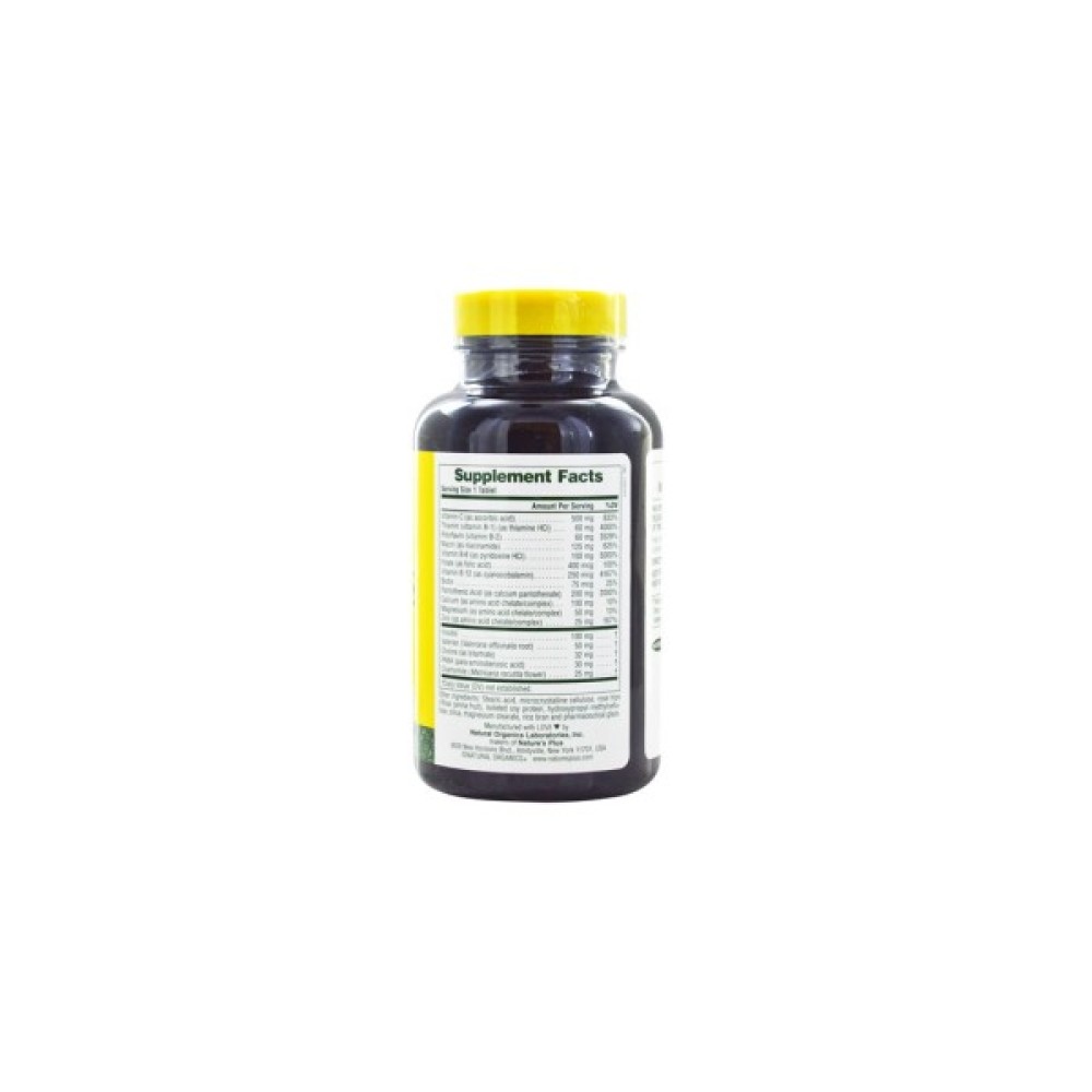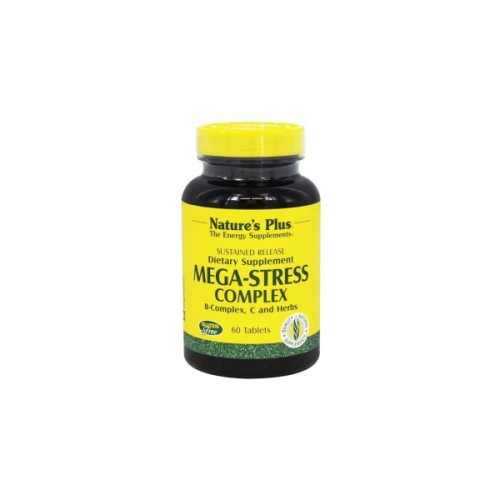 Комплекс Mega-Stress покликаний компенсувати дефіцит водорозчинних вітамінів, який проявляється внаслідок тривалих стресових ситуацій. Цей комплекс збагачений усіма водорозчинними вітамінами, а також трьома основними мінералами: кальцієм, магнієм і цинком. Саме ці компоненти дозволять поліпшити загальне самопочуття. Примітно те, що Natures Plus також додали в комплекс Mega-Stress рослинні екстракти для заспокоєння нервової системи — валеріану і ромашку.