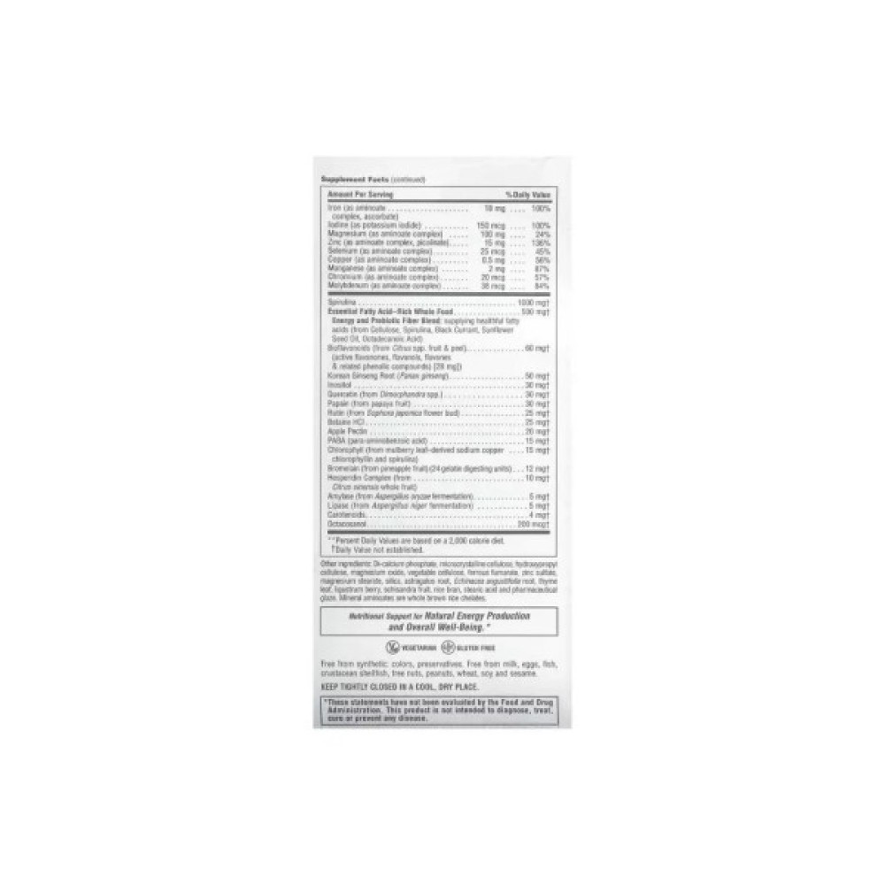 Головною функцією цього комплексу є підтримка та зміцнення імунітету, профілактика різних захворювань, пов'язаних із дефіцитом тих чи інших вітамінів та мінералів в організмі. Важливою функцією є уповільнення процесів старіння. Цей ефект досягається за рахунок ретельно продуманого та збалансованого складу. Цей комплекс багатий на фолієву кислоту і має оптимальний вміст заліза. Вітаміни групи В, у тому числі біотин та фолієва кислота, потрібні для зміцнення та оздоровлення волосся, шкіри та нігтів. Комплекс мінералів потрібен для міцних кісток та гнучких суглобів. Хром допомагає знизити цукор і зменшити потяг до солодкого. Також до складу входять рослинні компоненти, цілісні продукти, багаті на незамінні жирні кислоти та різні біофлавоноїди. Кожен з компонентів комплексу допомагає підтримувати всі життєво необхідні функції організму. З кожною порцією таблеток ви отримаєте денну норму всіх потрібних мікроелементів, які не можуть повною мірою надійти в організм із їжею чи напоями.