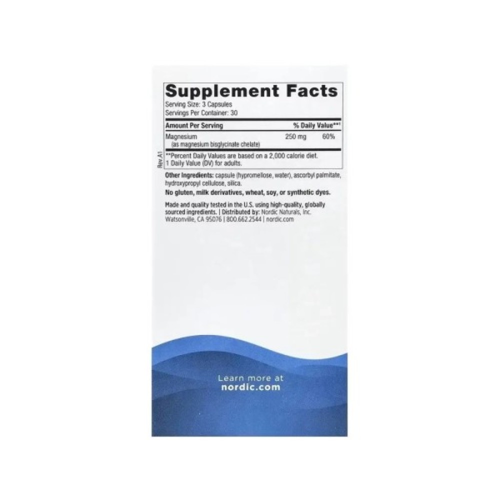 Основні переваги: Магній гліцинат, 250 мг на порцію, Magnesium Glycinate, Nordic Naturals, 90 капсул