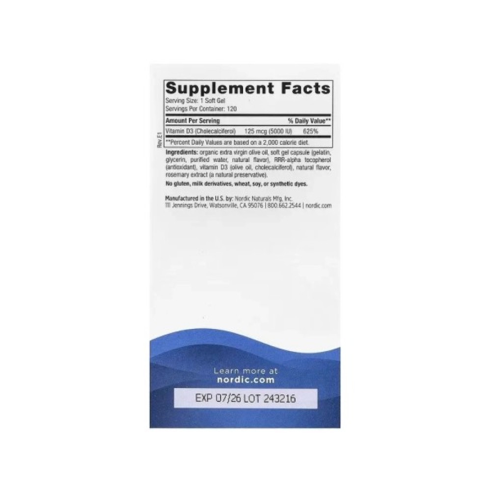 Вітамін D3, 125 мкг (5000 МО), смак апельсину, Vitamin D3, Nordic Naturals, 120 міні капсул