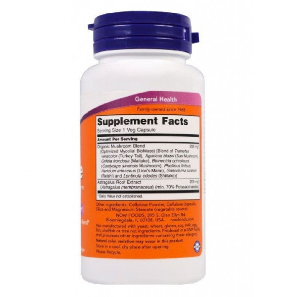 Органічна суміш грибів (Оптимізована біомаса міцелію) (Трутовик різнокольоровий, Агарик Бразильський, Маїтаке, Кордіцепс, Трутовик Санхвана, Ожин гребінчастий (Грива лева), Рейші, Шіїтаке) 200 мг, Екстракт кореня астрагалу 200 мг