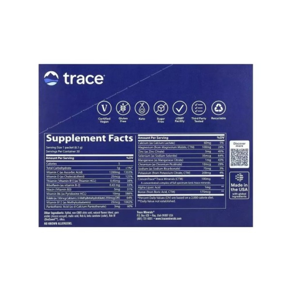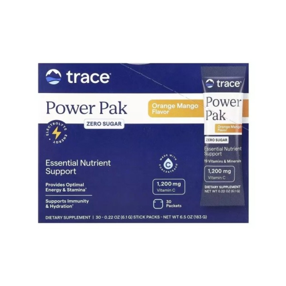 Основні переваги: Електроліти без цукру, смак апельсину та манго, Power Pak, Trace, 30 пакетів по 6 грЦей напій без цукру з приємним смаком апельсину та манго містить широкий спектр незамінних електролітів: вітаміни групи B, натрій, калій та багато інших іонних мікроелементів, тим самим заповнює основні мінерали, втрачені з згодом під час тренувань, у процесі активних фізичних навантажень або після спекотного дня, проведеного на сонці. Він містить усі необхідні вітаміни та мінерали для підтримки імунної системи, життєвих сил, енергійності та витривалості активного організму. Підтримує організм у тонусі при заняттях спортом та допомагають легко відновитися після активних фізичних навантажень.