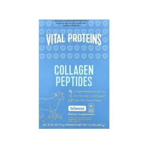 Основні переваги: Пептиди колагену без ароматизаторів, 10 г у порції, Collagen Peptides, Vital Proteins, 20 пакетиківКолаген є складний структурний білок, який зберігає силу і гнучкість у всьому тілі. З віком виснаження колагену може привести до появи загальних ознак старіння шкіри, волосся, нігтів, м'язів, сухожиль, зв'язок і кісток. Ці колагенові пептиди мають нейтральний смак, що робить їх відмінним доповненням до будь-яких напоїв та страв.