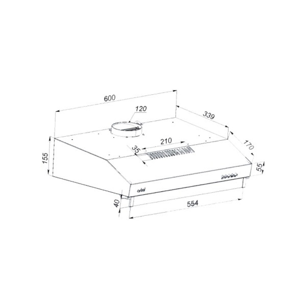 Габаритні розміри витяжки без упаковки складають 155 x 600 x 500 мм, а з упаковкою — 200 x 618 x 530 мм. Вага пристрою без упаковки становить 6,3 кг, що робить його достатньо компактним та легким для установки і використання.