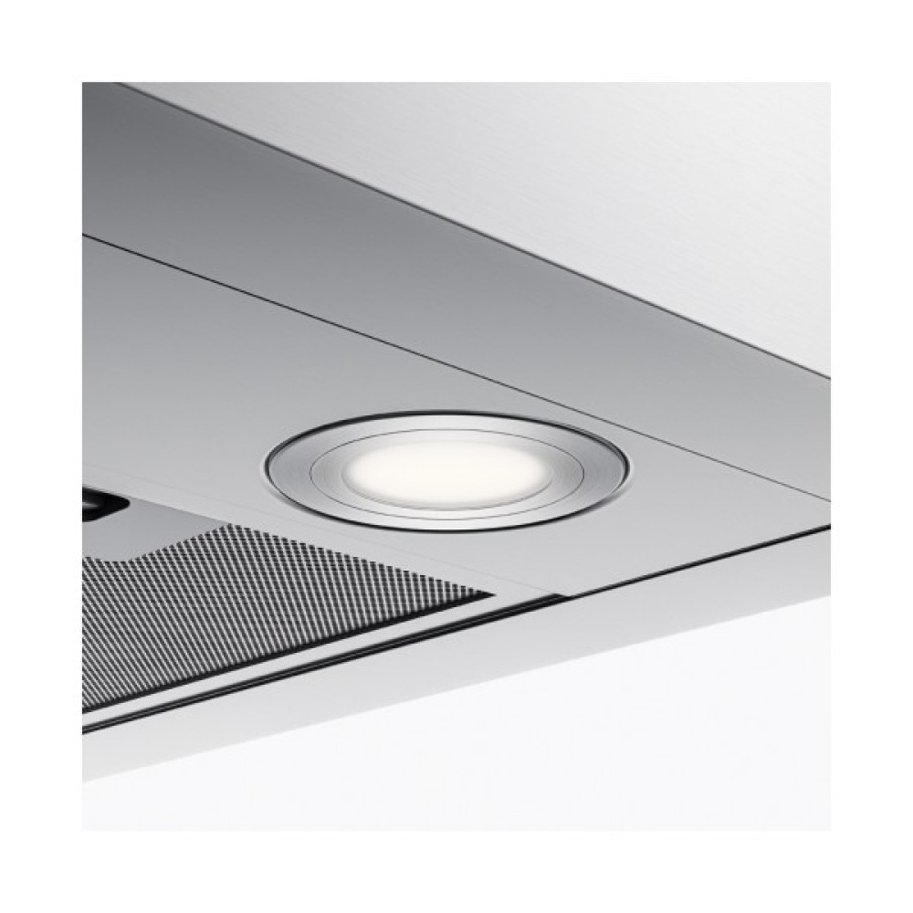 Кухонна витяжка Faber TSP X A60 2LS із T-подібною формою шириною 60 см забезпечує продуктивність до 1180 м³/год із трьома швидкостями, зручним сенсорним керуванням і енергоефективністю класу А. Оснащена світлодіодним підсвітленням 5500K та фільтром для жиру, який можна мити в посудомийній машині.
