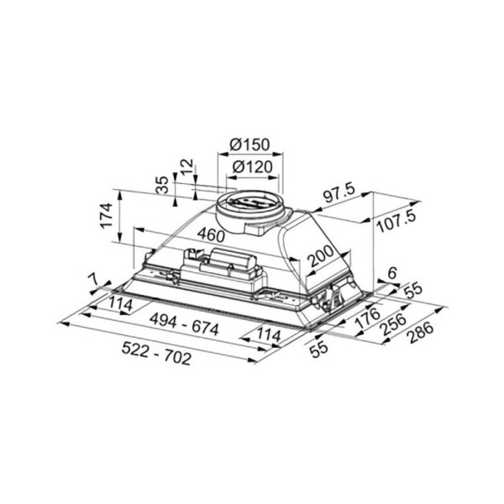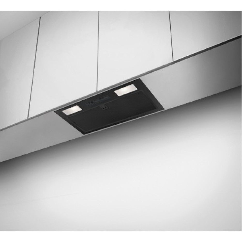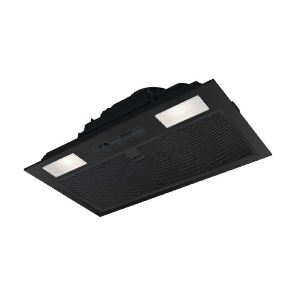 Витяжка, яка вбудовується в шафу FBI 525 BK, має 3 швидкості, можливість роботи в замкнутому контурі, енергозберігаюче LED підсвічування для комфортного освітлення та алюмінієвий фільтр чорного кольору, який можна мити в посудомийній машині. Рамка має товщину всього 7 мм і виконана у чорному матовому кольорі.