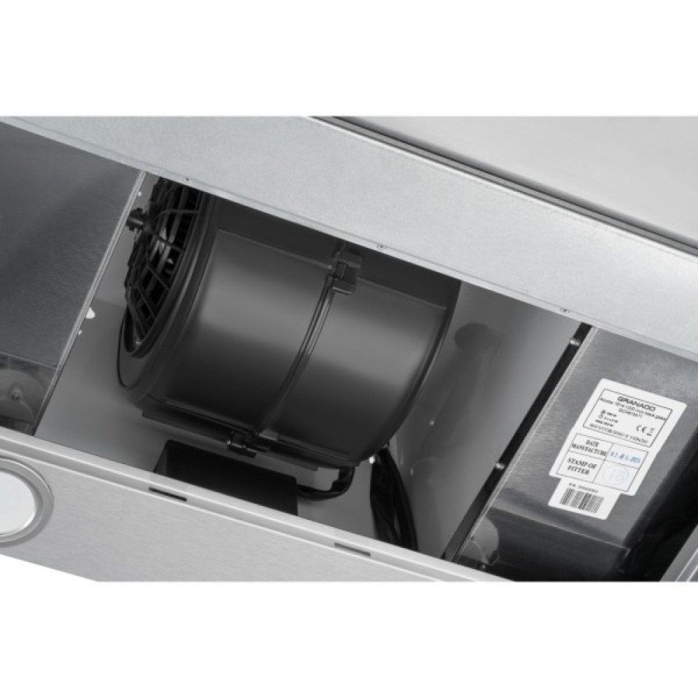 Щоб обрати одну з чотирьох швидкостей роботи витяжки, можна скористатися як сенсорним керуванням, так і пультом. Продуктивність 1200 куб.м/год розрахована на ефективне очищення повітря від диму і зайвих запахів у великому приміщенні.