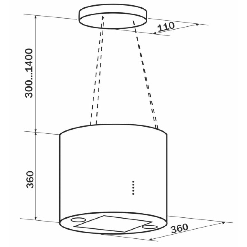GRANADO Segovia 1614-1200 Black – стильна підвісна витяжка для острівної кухні. Створена для просторих приміщень (до 40 кв.м), ця витяжка стане окрасою вашої студії, дворівневої квартири чи заміського будинку.