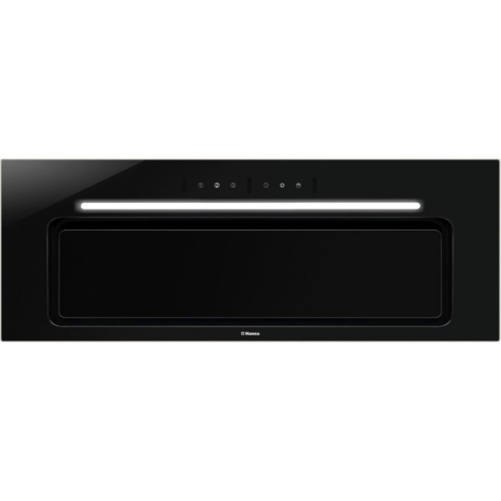 Ця модель — вбудована у кухонну шафу шириною 60 см витяжка від Hansa з чорним скляним фасадом. Вона працює в режимах відведення та рециркуляції повітря, що робить її універсальною для кухонь без вентиляційного каналу. Продуктивність до 500 м³/год дозволяє швидко очищати повітря під час активного готування. Управління — сенсорне панеллю та жестами, що зручні та гігієнічні.