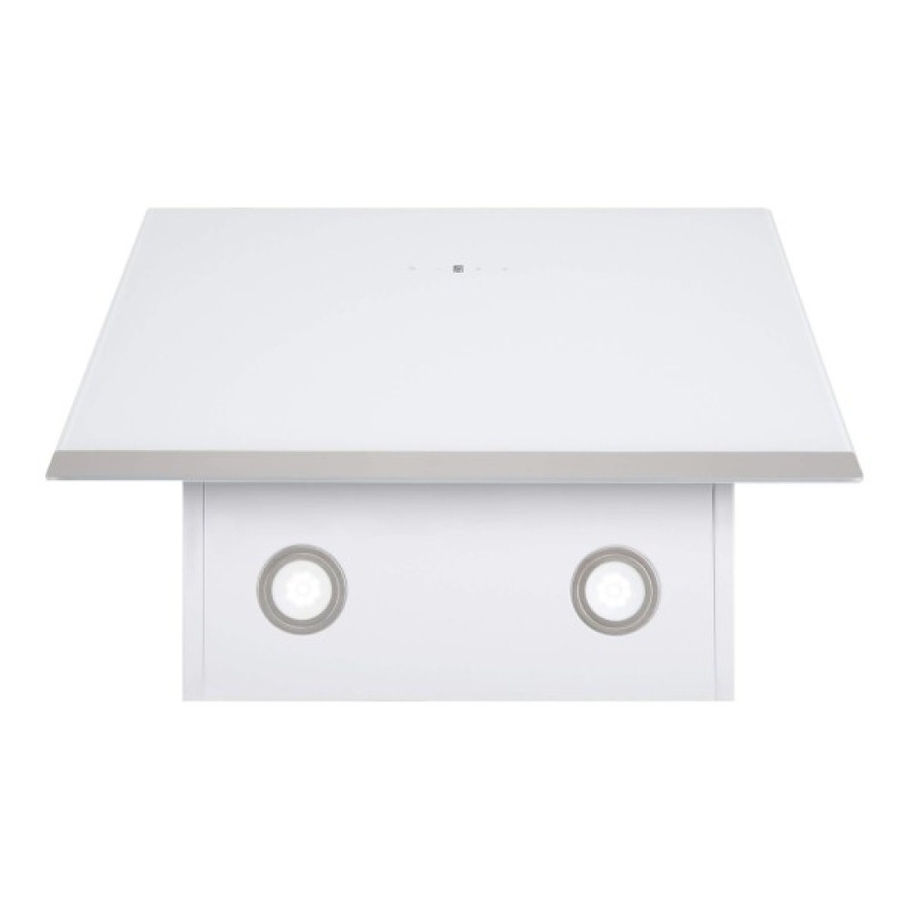 - Дизайн, виконаний в загартованному склі, з додаванням планки з нержавіючої сталі в нижній частині скла, робить цю витяжку не тільки функціональним приладом, але і гармонійною частиною інтер'єру вашої кухні.