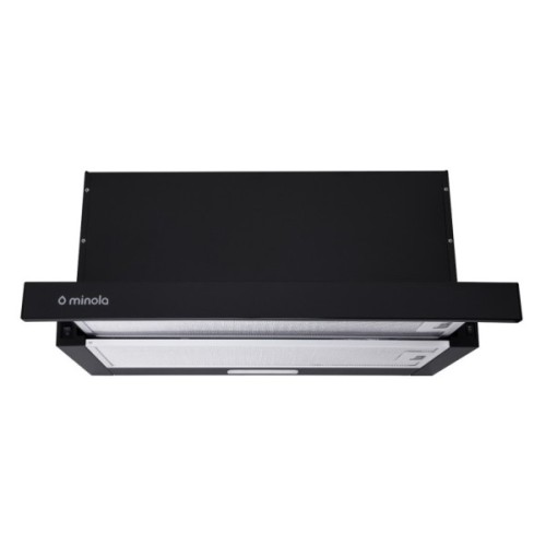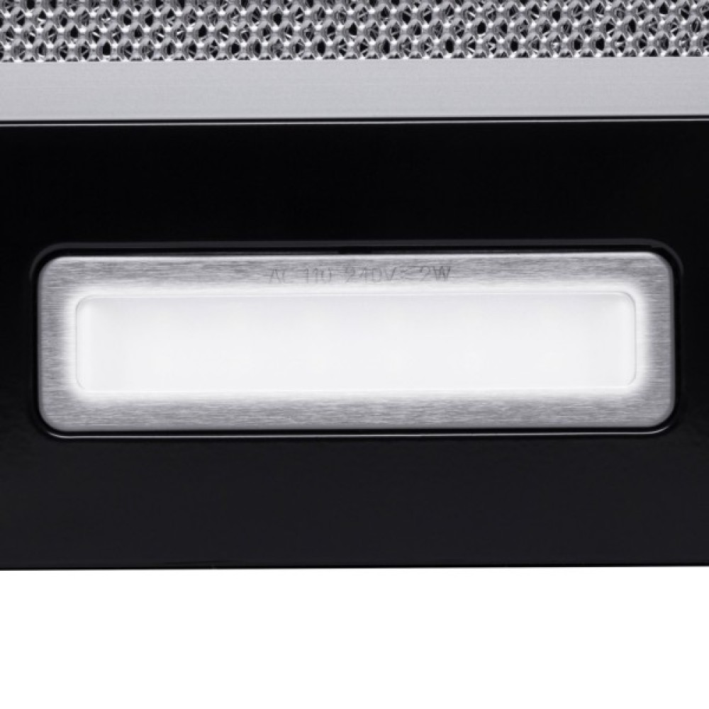Телескопічна витяжка, потужність 700 м3/год., ширина – 495 мм. Колір витяжки/висувної панелі – чорний. Матеріал витяжки/витяжної панелі – метал. Управління механічне. 2 швидкості. 1 двигун. Освітлення 1х2 Вт LED. Алюмінієвий фільтр. Відведення/Рециркуляція. Рівень шуму 52-61 Дб
