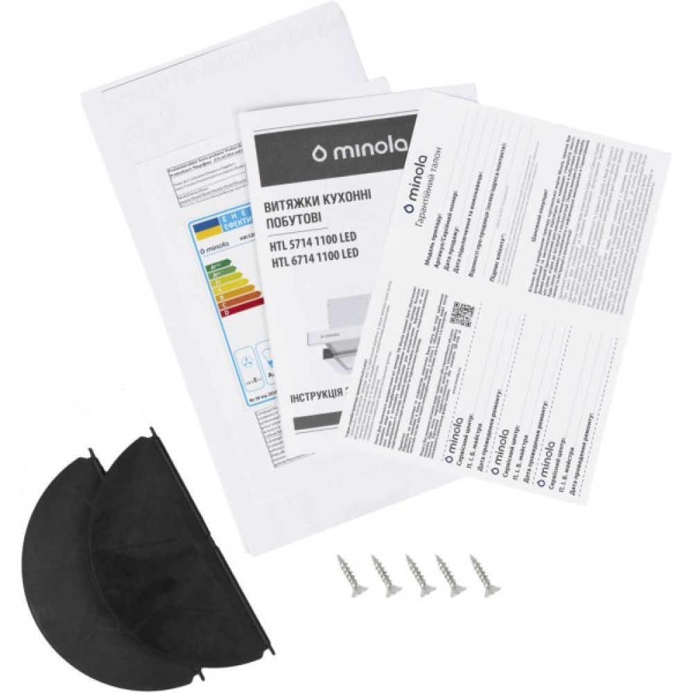 Кухонна витяжка Minola HTL 5714 1100 LED обладнана двома захисними алюмінієвими жировими фільтрами. Вони виготовлені з декількох шарів алюмінієвої сітки, що забезпечує надійний захист двигуна та інших деталей приладу від попадання жиру та бруду. Очищення алюмінієвого фільтра слід проводити кожні 2-3 місяці вручну в мильному розчині або в посудомийній машині.