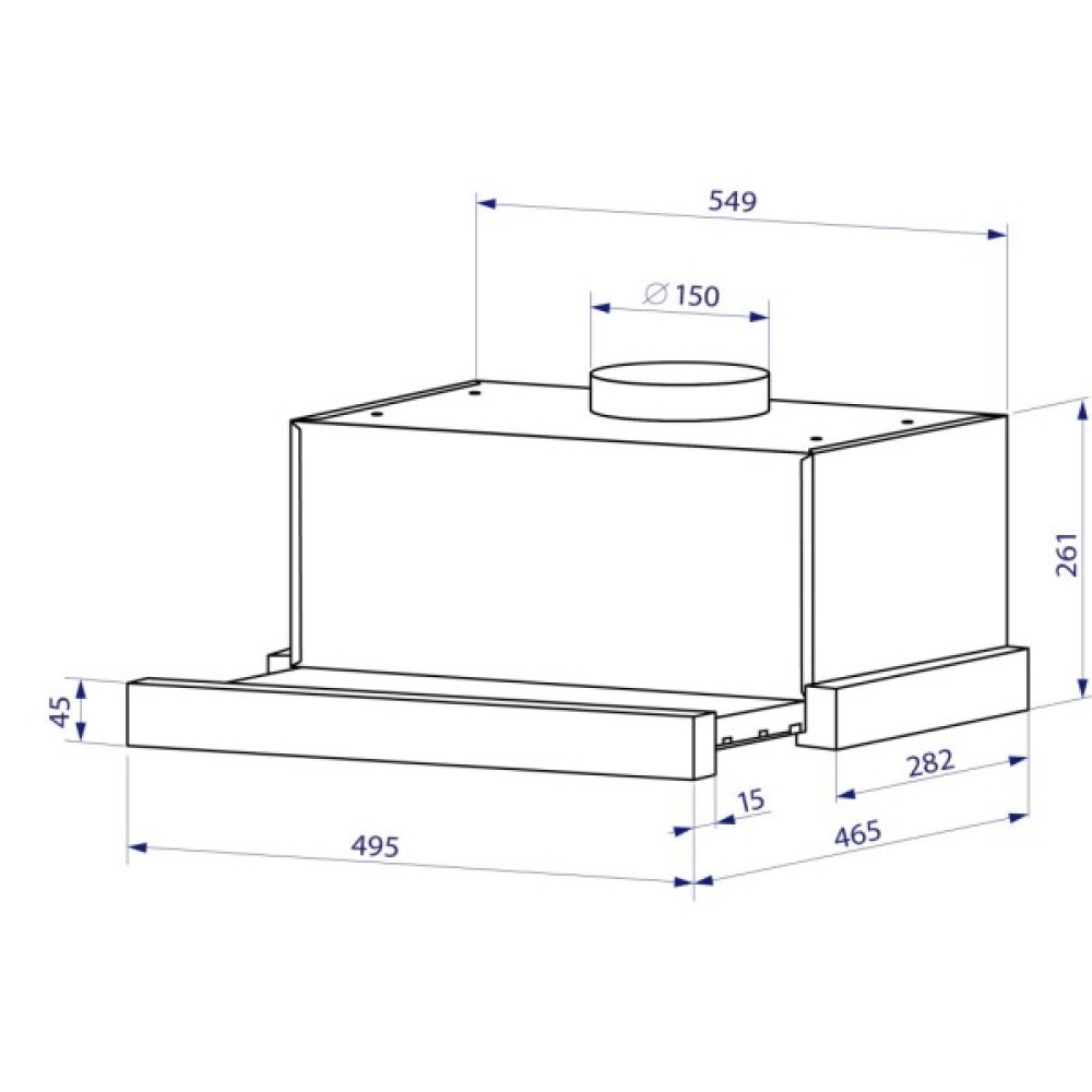 Витяжка виготовлена з фарбованого металу. Це робить цю модель витяжки, що ідеально підходить для вашої кухні. Механічний перемикач керування розташований збоку. На ньому знаходяться кнопки перемикання швидкостей та увімкнення/вимкнення освітлення.