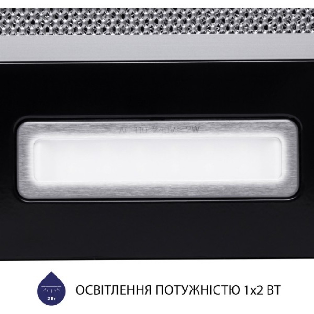 Телескопічна витяжка для Minola HTL 5714 1100 LED оснащена LED-лампою потужністю 2 Вт. Саме світлодіодні лампи є кращим вибором для додаткового освітлення кухонної поверхні, оскільки вони дозволяють суттєво знизити витрати на електроенергію, а також мають високу світловіддачу.