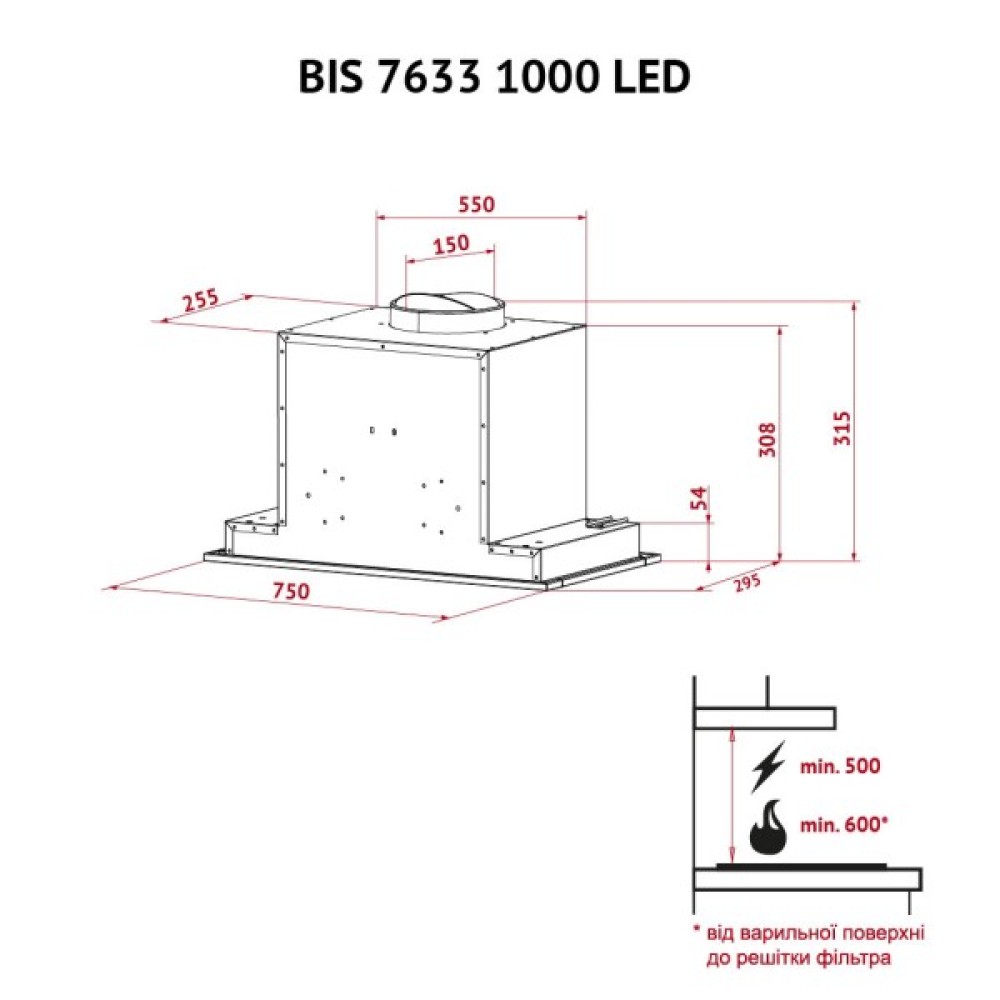 *Робота пристрою в режимі рециркуляції здійснюється лише за рахунок використання вугільного фільтра, який можна придбати окремо. Виробник perfelli.ua для витяжок власного виробництва також випускає вугільні фільтри.