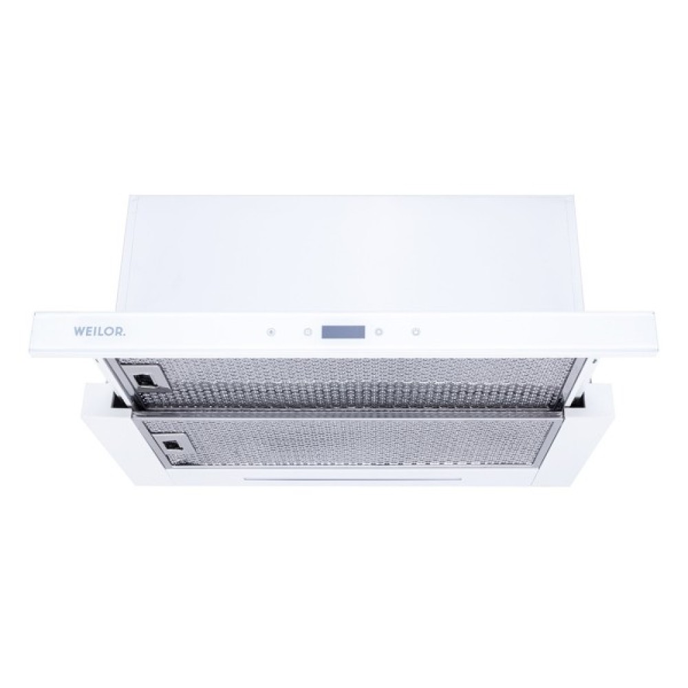Вбудований корпус витяжки Weilor PTS 6265 BL 1300 LED Strip має телескопічну конструкцію, яка чудово показала себе на практиці. Така будова передбачає повне вбудовування, при якому лише невелика частина витяжного пристрою залишиться на увазі. При цьому є також виїзна деталь, яка може бути використана в разі потреби. Весь інший час витяжка знаходиться в складеному стані.