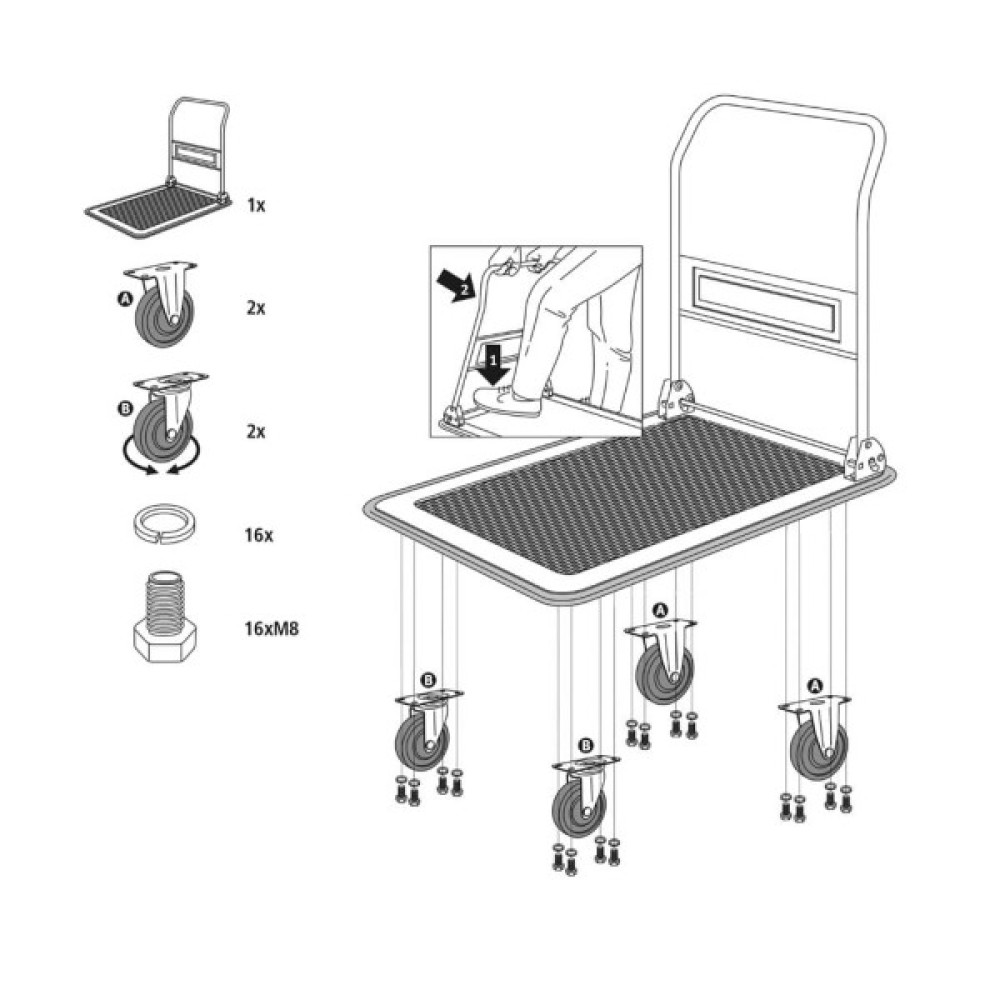 Завдяки інноваційному складному дизайну візок забезпечує стабільне і легке переміщення. Він відкривається і складається за кілька секунд, завдяки чому він готовий до роботи за лічені секунди. У складеному вигляді він займає мінімум місця, що дозволяє зручно його зберігати в будь-яких місцях.