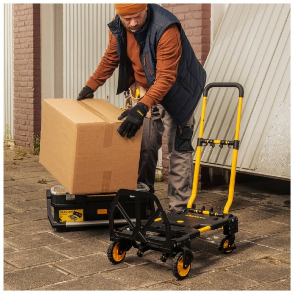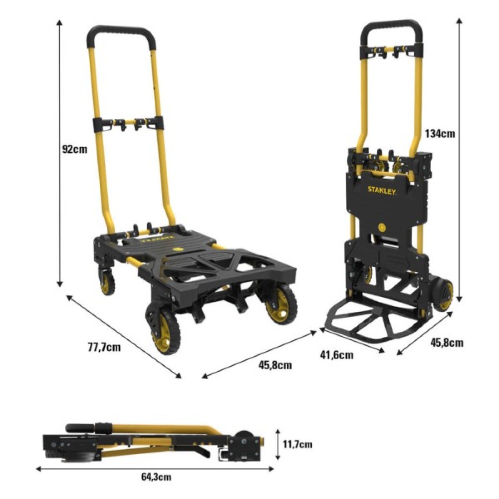 Візок Стенлі SXWT-FT585 має два варіанти використання: як ручний візок, з максимальним навантаженням до 70 кг, і як платформний візок, з можливістю витримувати велике навантаження до 137 кг. Розкладний механізм дозволяє за кілька секунд змінювати його форму, що забезпечує зручність зберігання і транспортування. Завдяки компактним розмірам в складеному стані і можливості використовувати його як ручний візок або платформу, цей візок стане незамінним помічником у перевезенні вантажів як в побуті, так і в професійній діяльності/