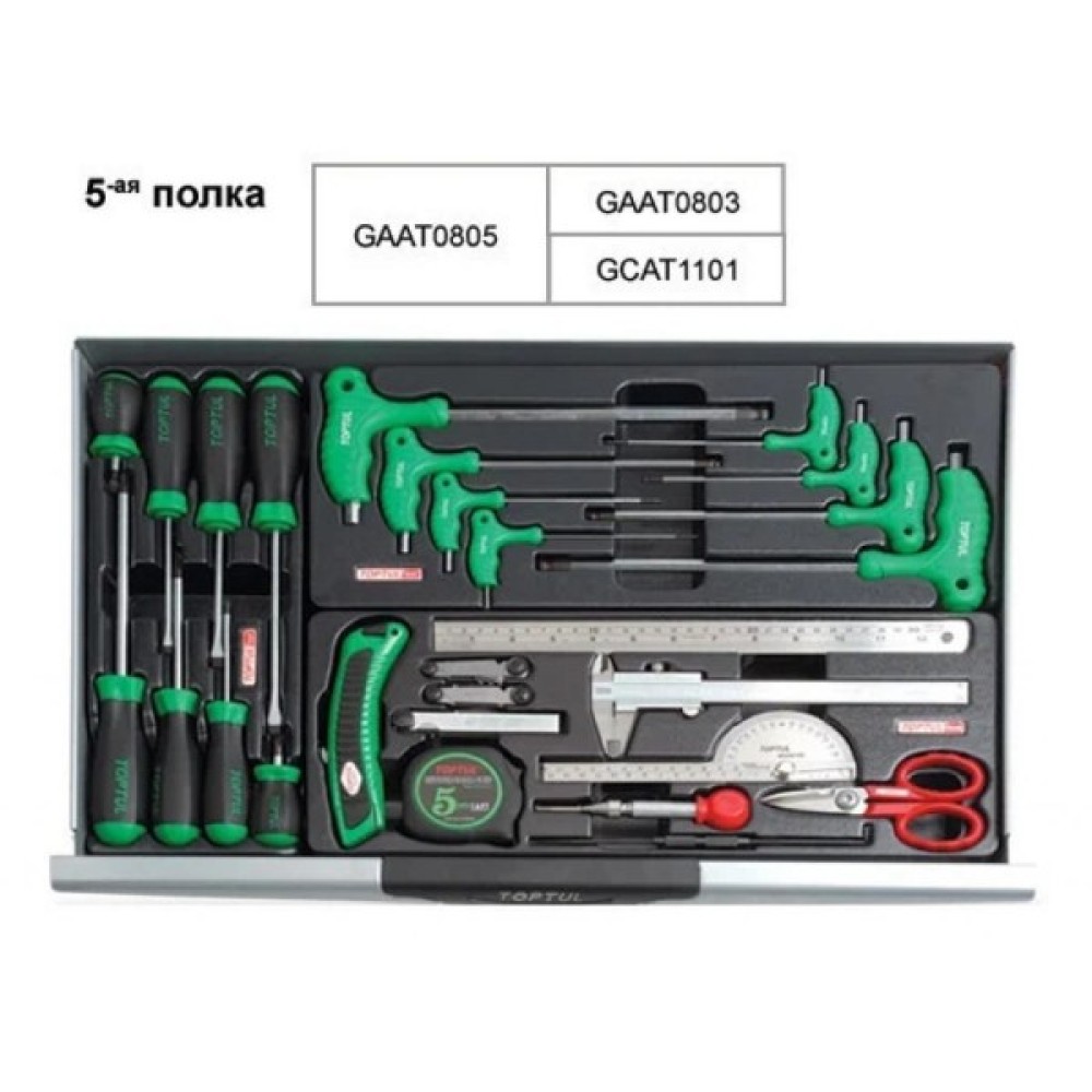 Основною особливістю цього набору є його автомобільне призначення, що робить його незамінним у СТО. Toptul відомий своїм акцентом на якість і надійність, тому всі інструменти виготовлені з високоякісних матеріалів, які гарантують тривалий термін служби навіть за найінтенсивніших умов експлуатації.