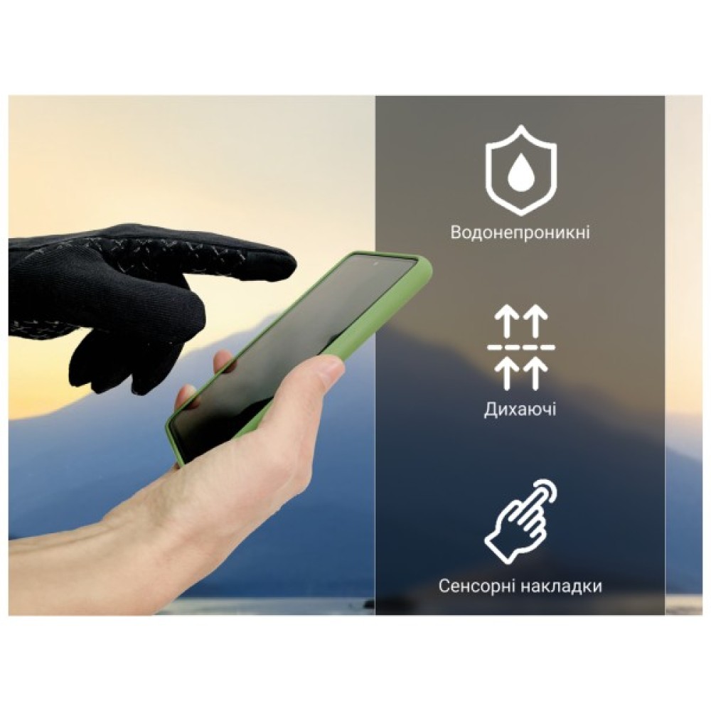 На подушечках великого та вказівного пальців є щільні накладки з поліестеру. Вони призначені для взаємодії із сенсорними екранами смартфонів та інших гаджетів.