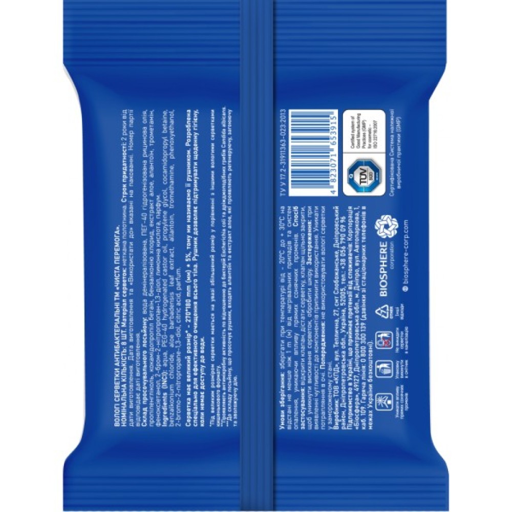Чиста Перемога антибактеріальні 8 шт.