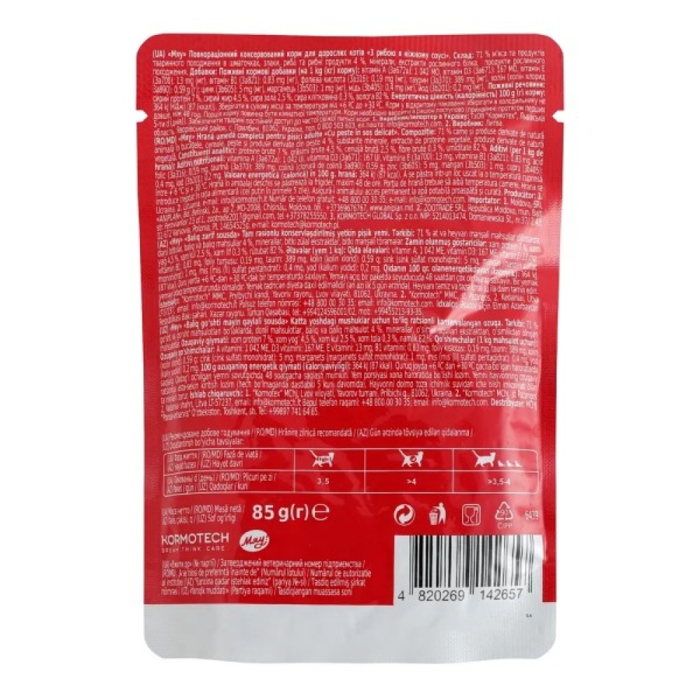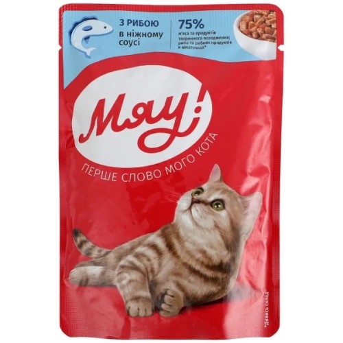 Вологий корм для кішок Мяу! З рибою в ніжному соусі 85 г (4820269142657)
