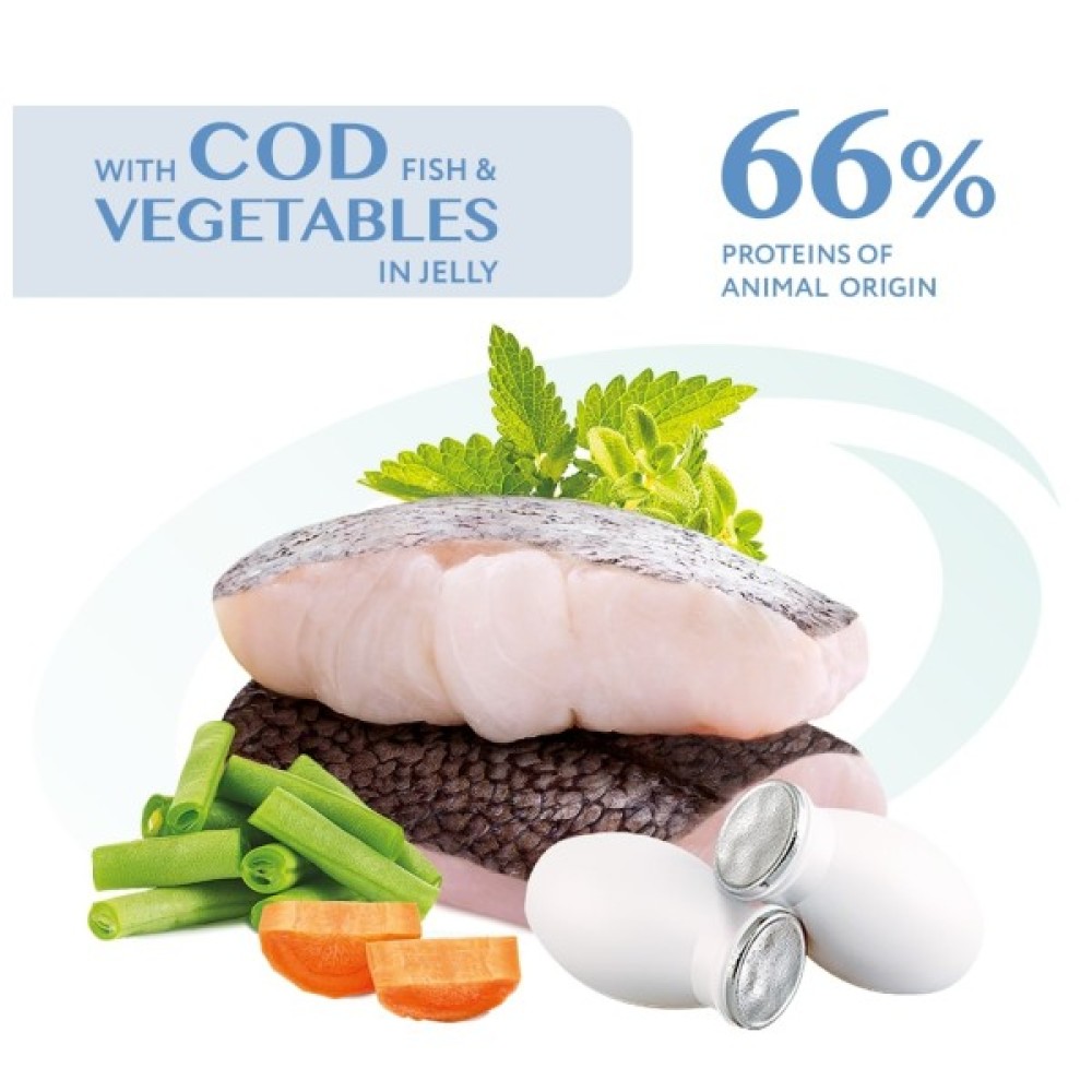 Вологий корм для кішок Optimeal з тріскою і овочами в желе - це ідеальний раціон для вашого улюбленця. Високий вміст тріски забезпечує кота цінними протеїнами, які сприяють здоров'ю та енергії. Омега-3 жирні кислоти та колаген з риби підтримують шкіру та блискучість шерсті.