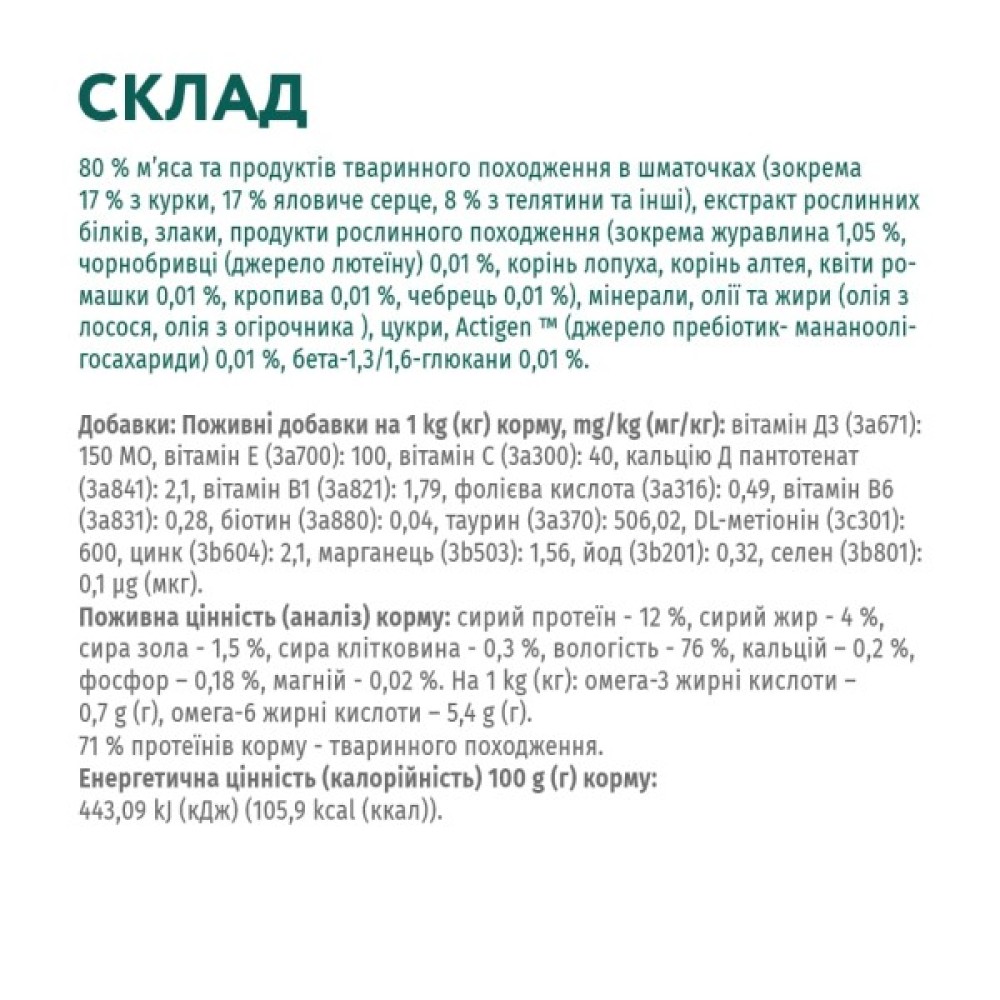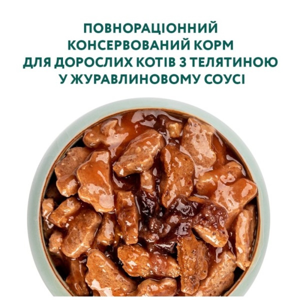 Вологий корм для кішок Optimeal зі смаком телятини в журавлинному соусі є ідеальним вибором для щоденного живлення вашого улюбленця. Основним інгредієнтом є телятина, що багата на білок та підтримує м'язову масу. Унікальний журавлинний соус забезпечує неповторний смак, якому важко встояти.