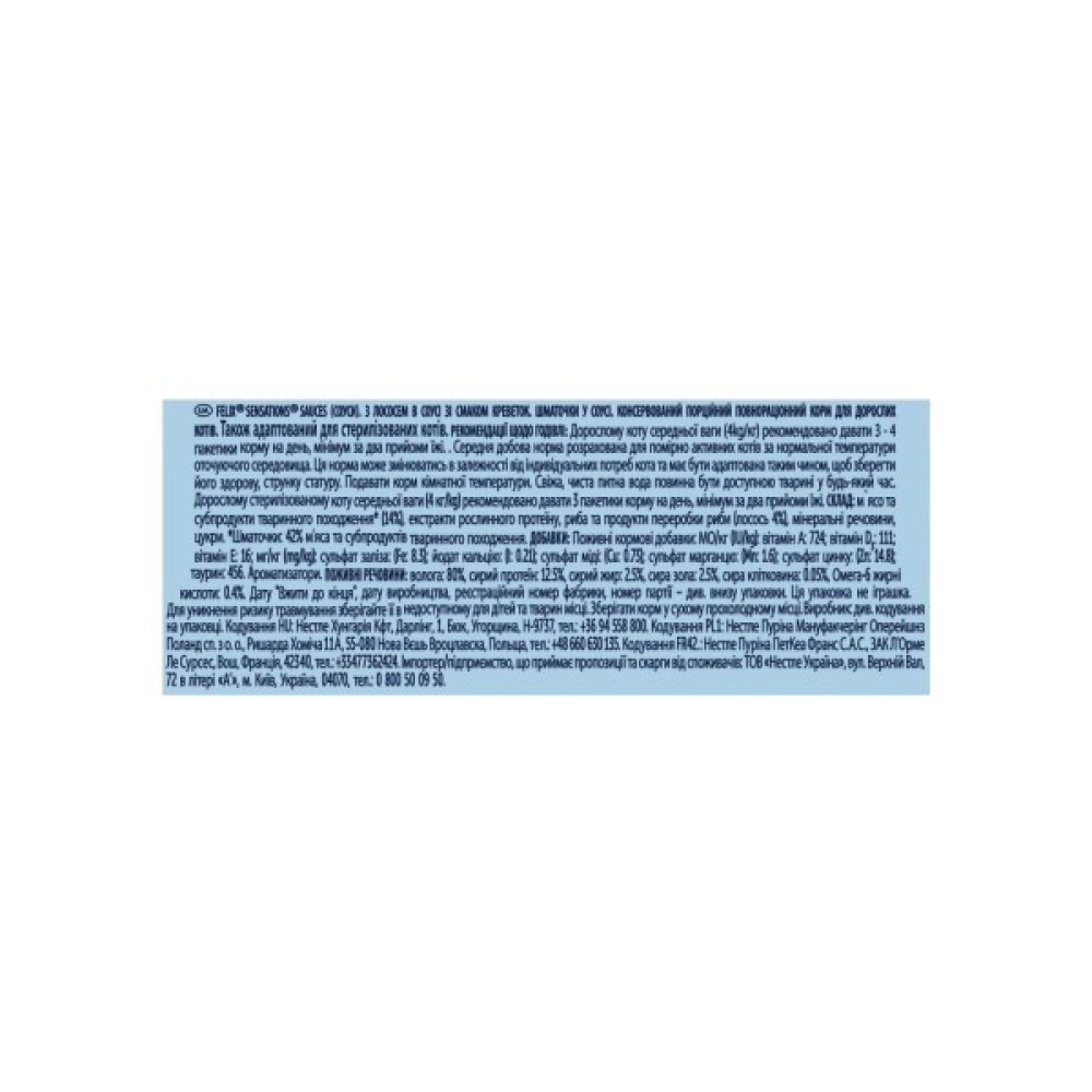 Вологий корм для кішок Purina Felix Sensations Sauces з лососем у соусі зі смаком креветок – це вибір справжніх гурманів з-поміж муркотливих створінь. Кожен шматочок, виготовлений із високоякісних інгредієнтів, занурений у насичений соус, даруючи вашій улюблениці справжню гастрономічну насолоду.